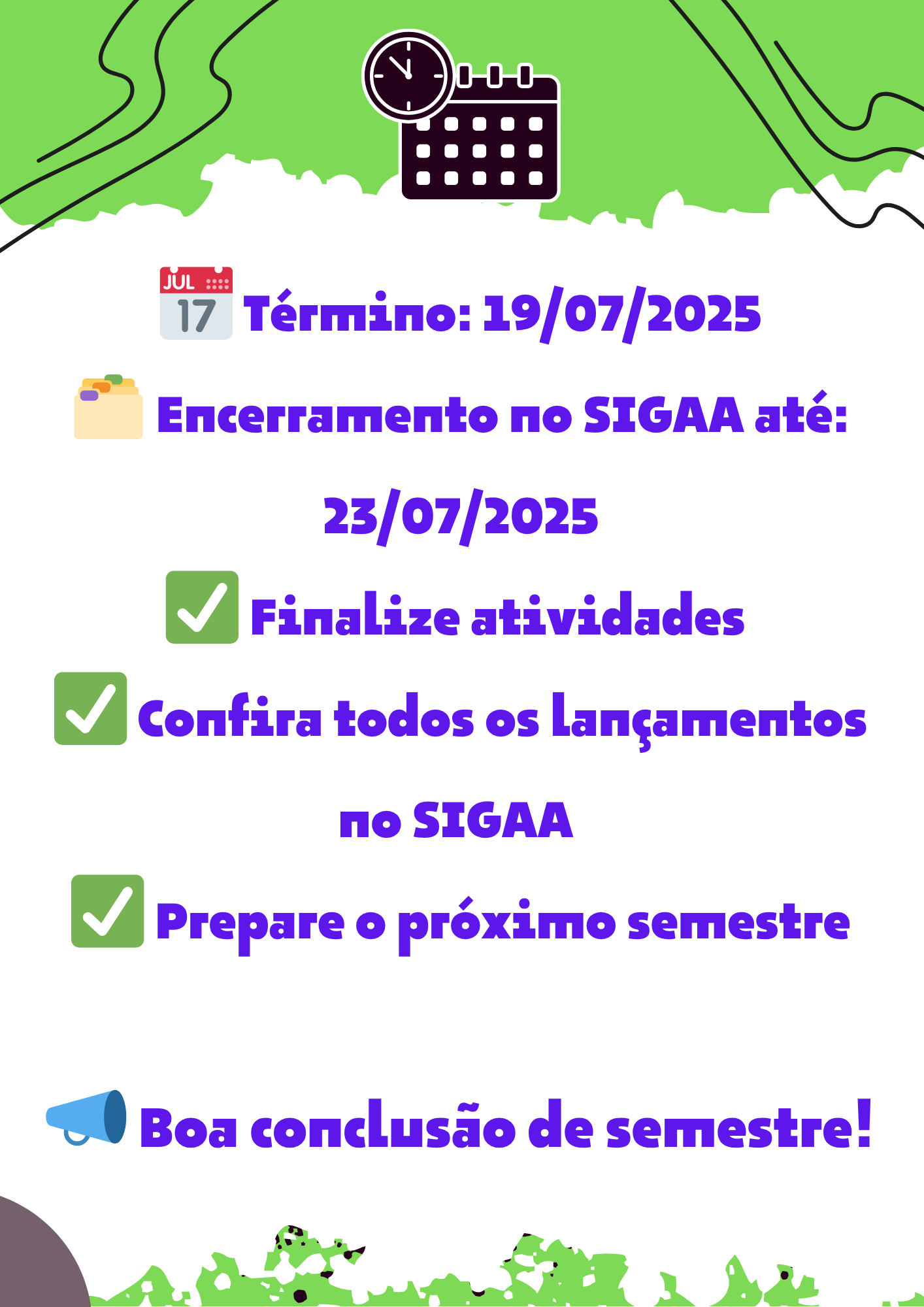 Informamos, para os devidos registros, que o prazo de abertura do Processo de Avaliação Curricular para Confecção de Diplomas, neste semestre, ocorrerá no período de 30...