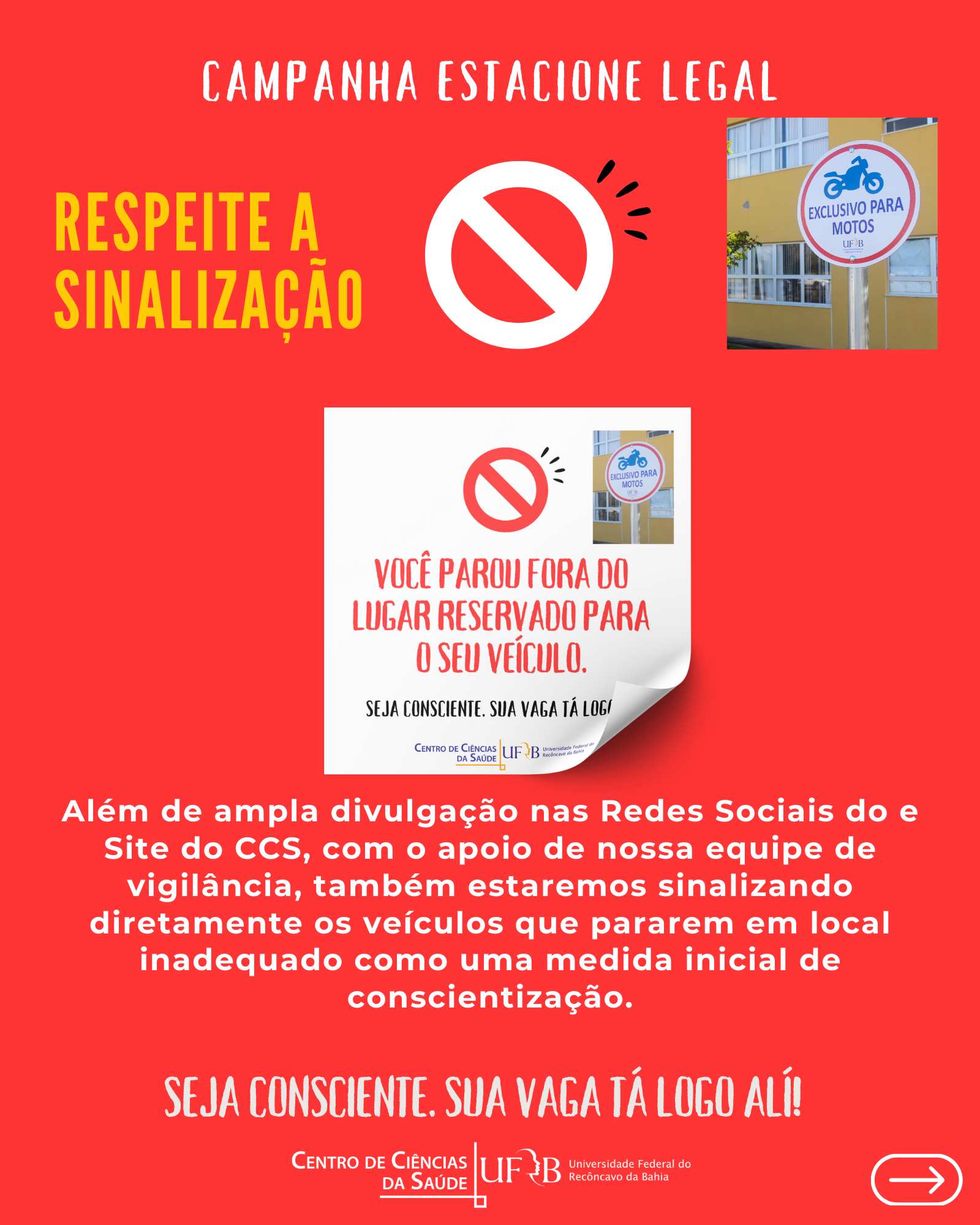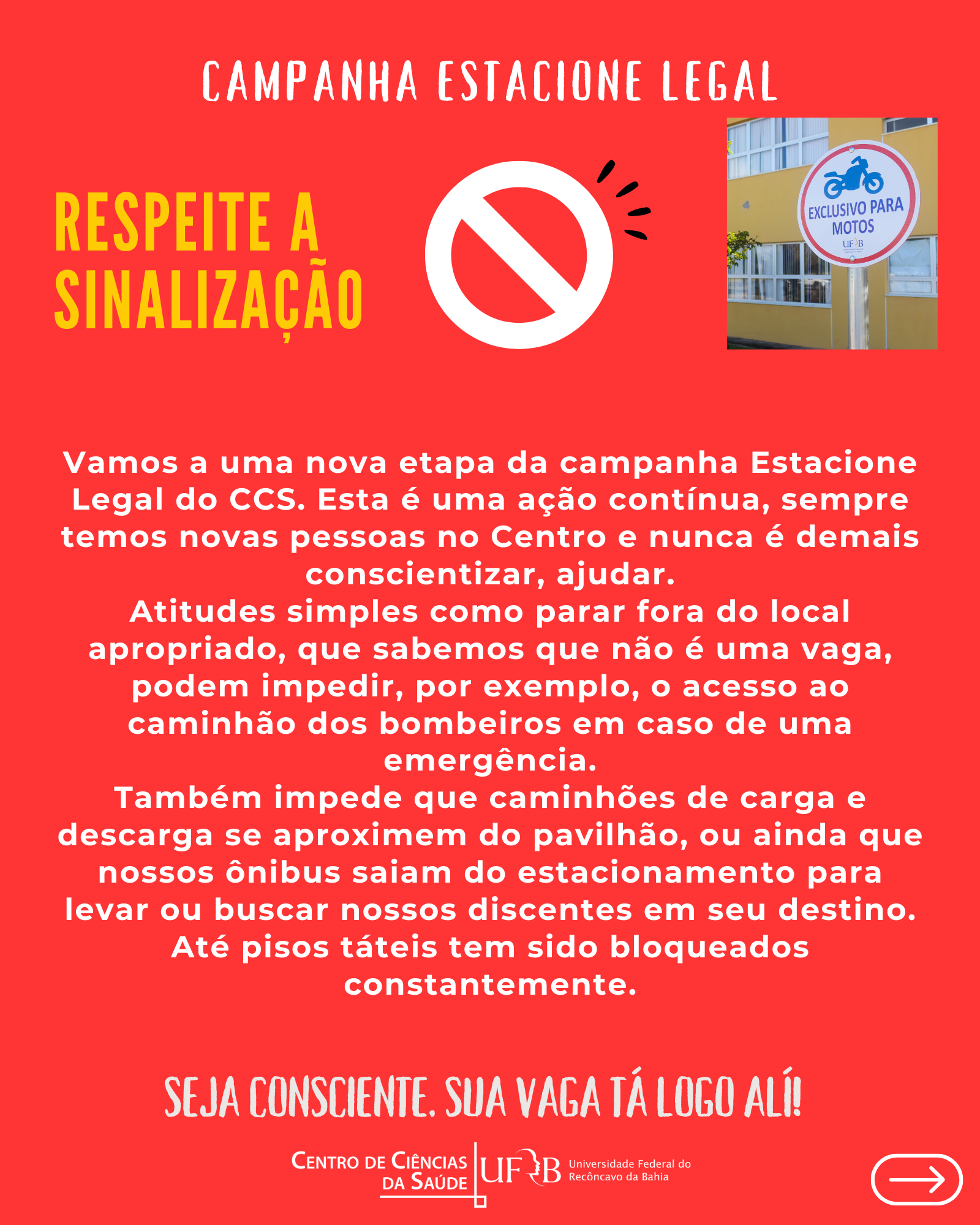 Seja consciente. Sua vaga tá logo alí!