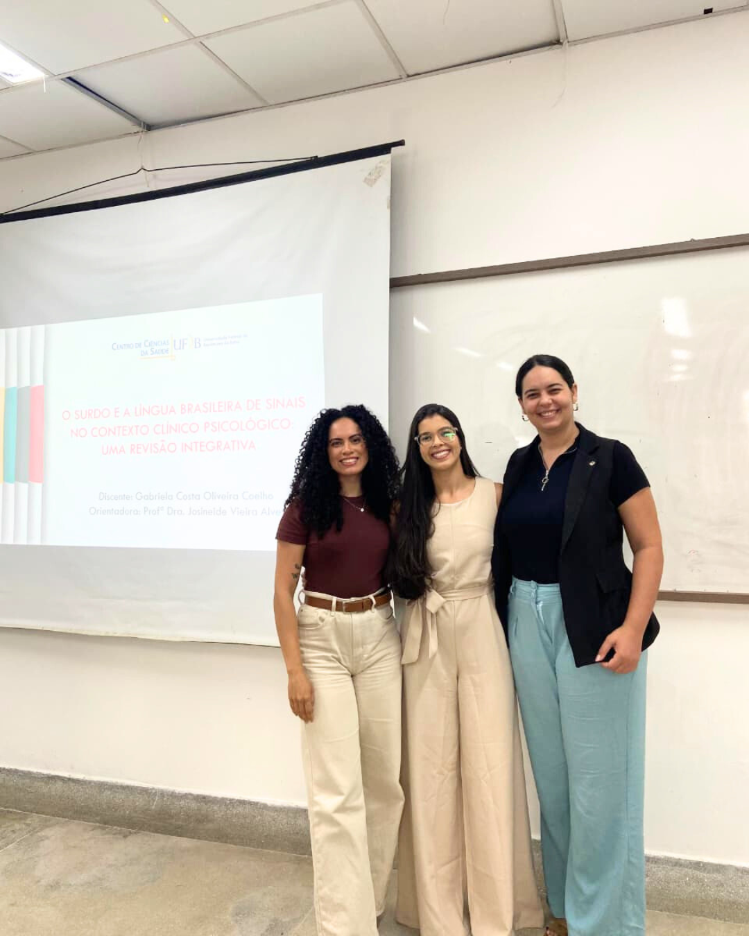"O Surdo e a Língua Brasileira de Sinais no contexto psicológico: uma revisão integrativa". Com esse tema a estudante de psicologia Gabriela Costa Oliveira Coelho defendeu o trabalho de conclusão do curso - TCC, dia 01 de dezembro, no Centro de Ciências da Saúde.