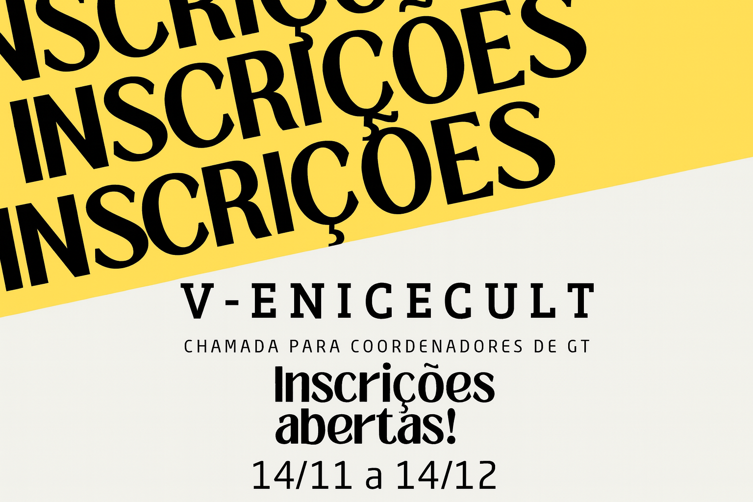 Inscrições para coordenação de GT no V-ENICECULT estão abertas de 14/11 a 14/12. Saiba como participar e contribuir com o maior encontro de estudos culturais.