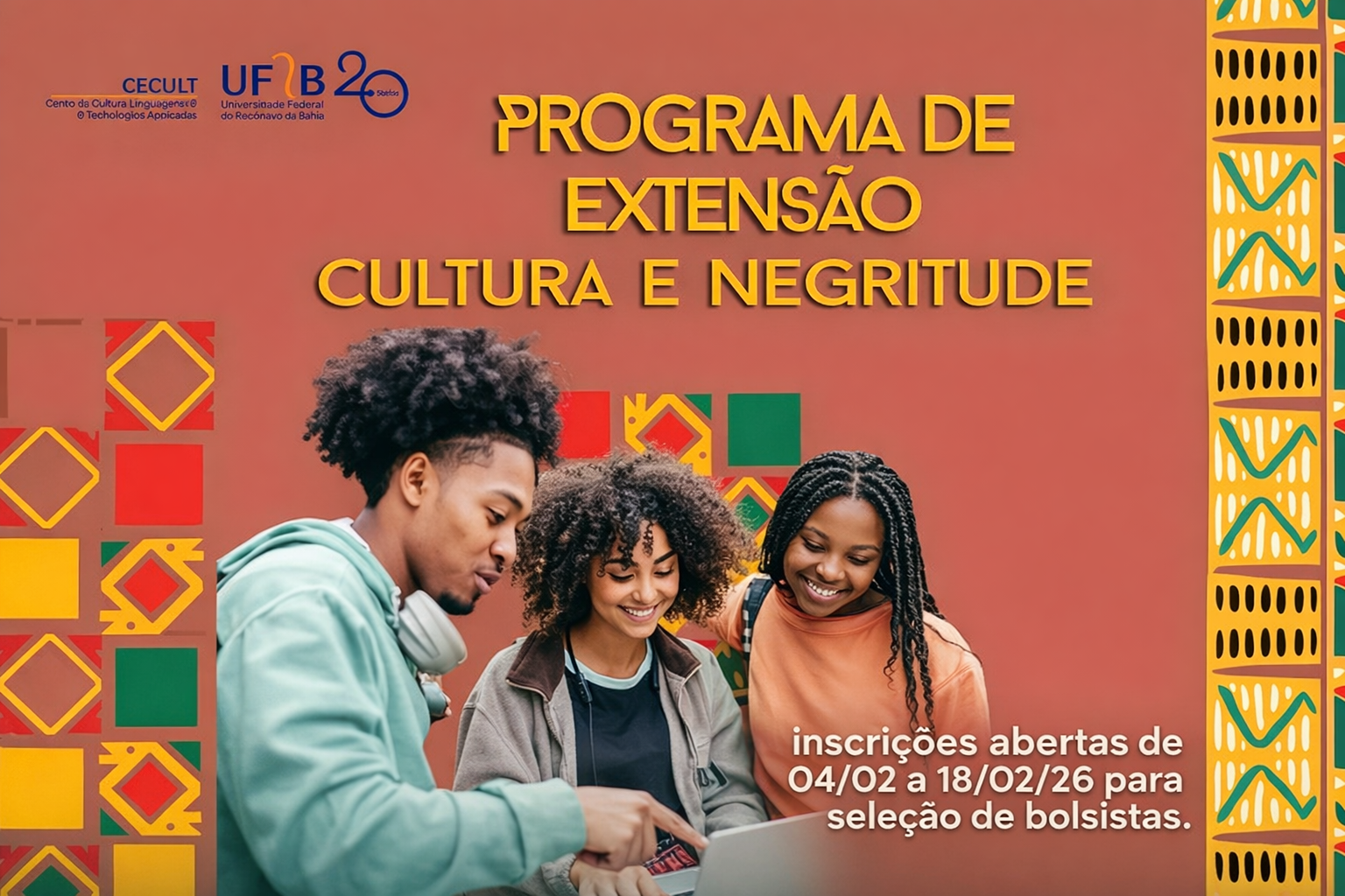 Processo Seletivo Simplificado para bolsistas do Programa de Extensão Cultura e Negritude do CECULT/UFRB. Inscrições abertas para discentes de graduação e pós-graduação.