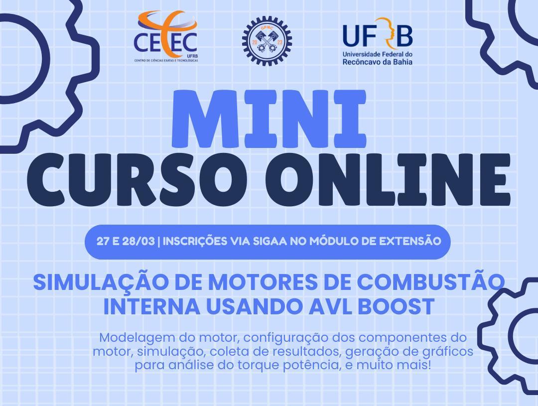 O Centro de Ciências Exatas e Tecnológicas (CETEC) da UFRB convida você para participar do Mini Curso Online de Simulação de motores de combustão interna usando o AVL Boost. O Mini...