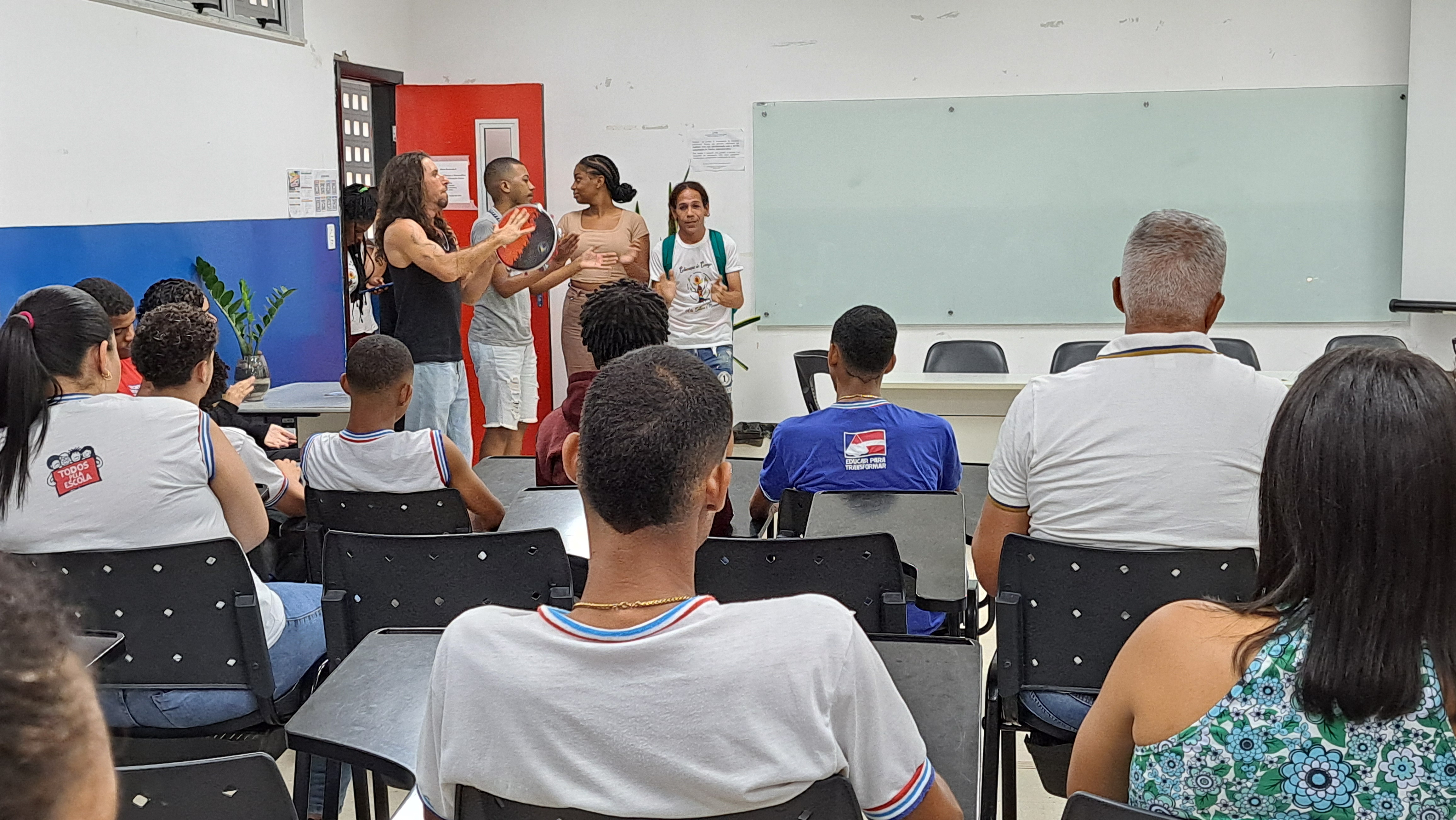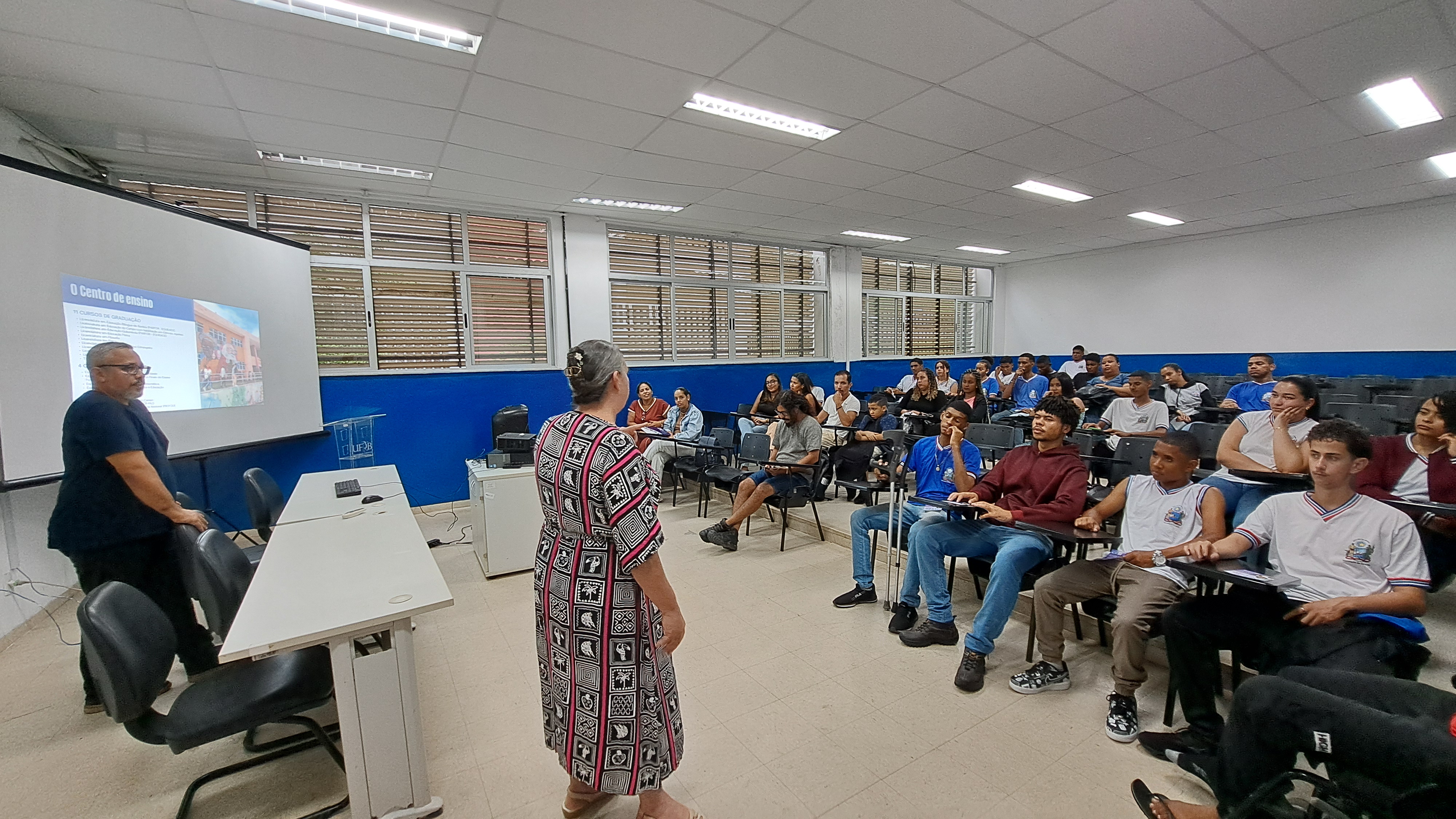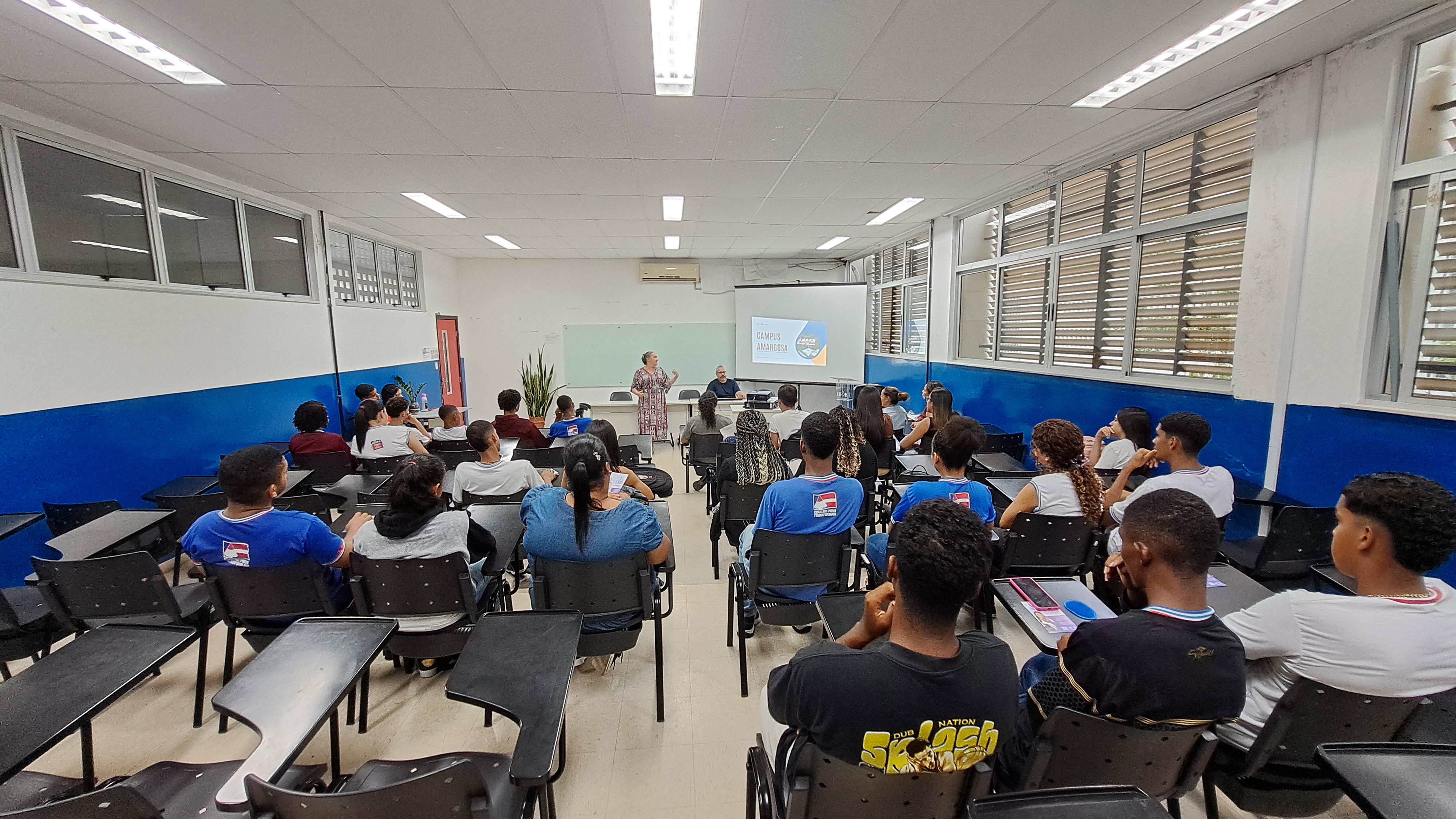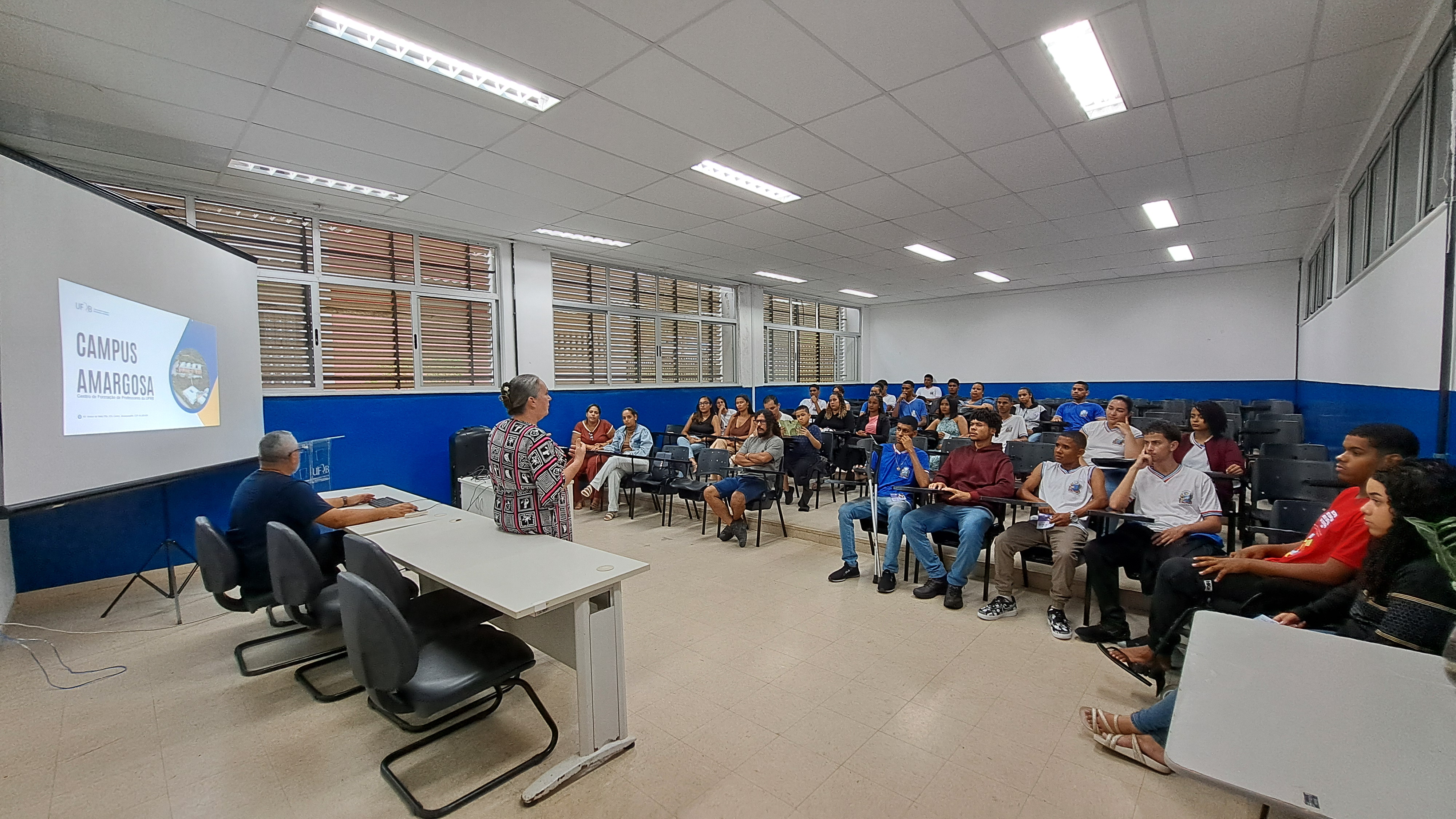 A programação teve início com uma apresentação institucional sobre o campus Amargosa, seguida por uma intervenção cultural realizada por estudantes do curso de Licenciatura em Educação do Campo, que também compartilharam informações e experiências sobre o curso com os visitantes.