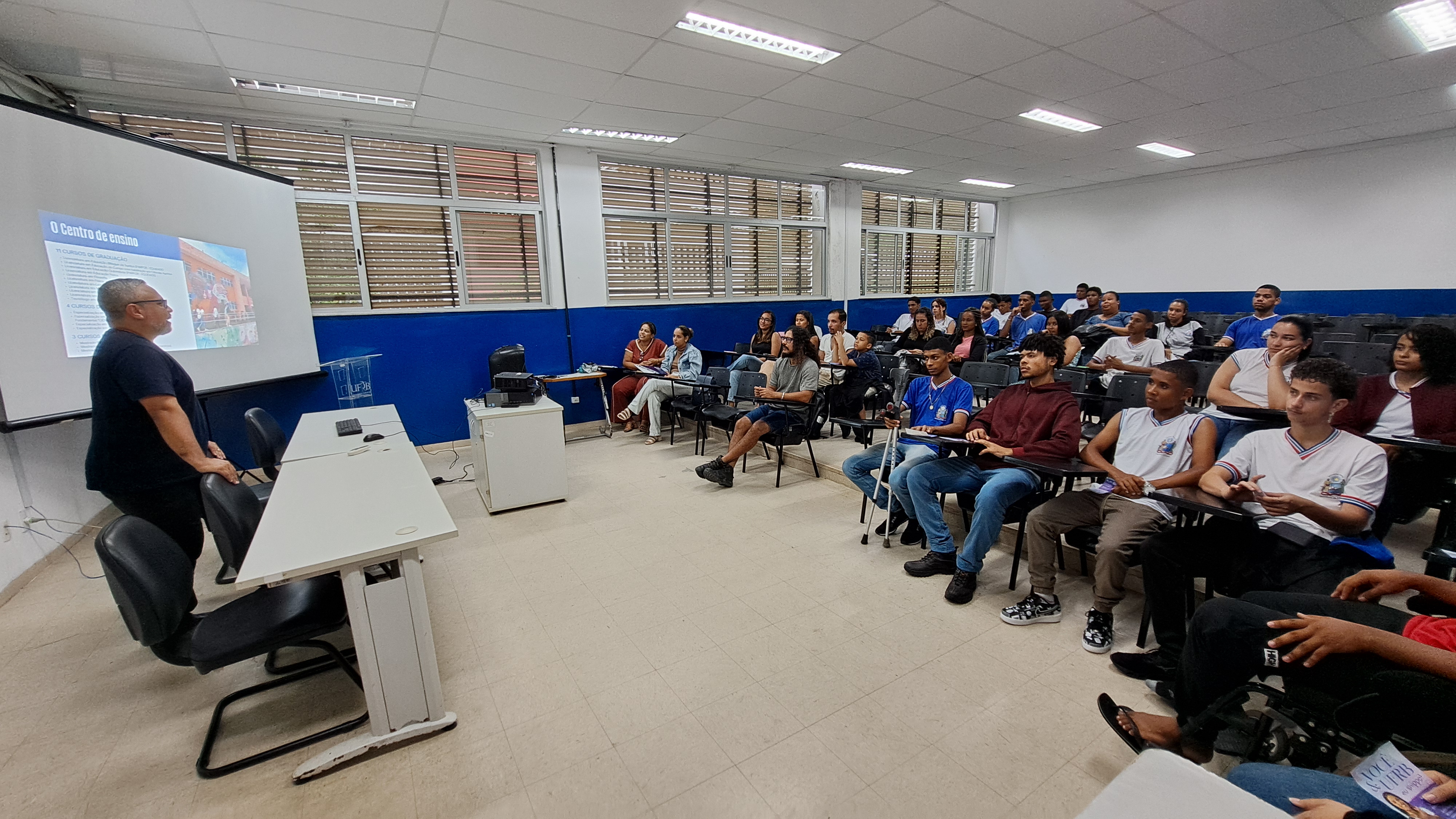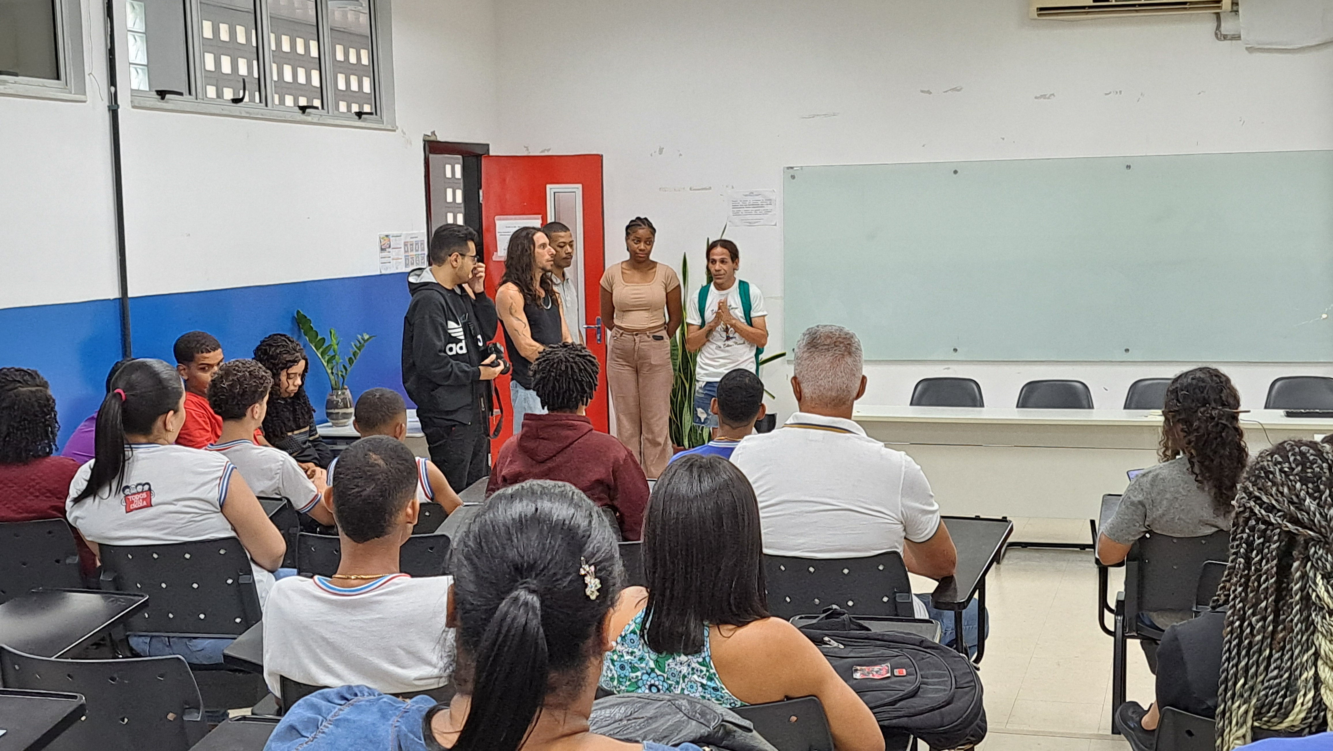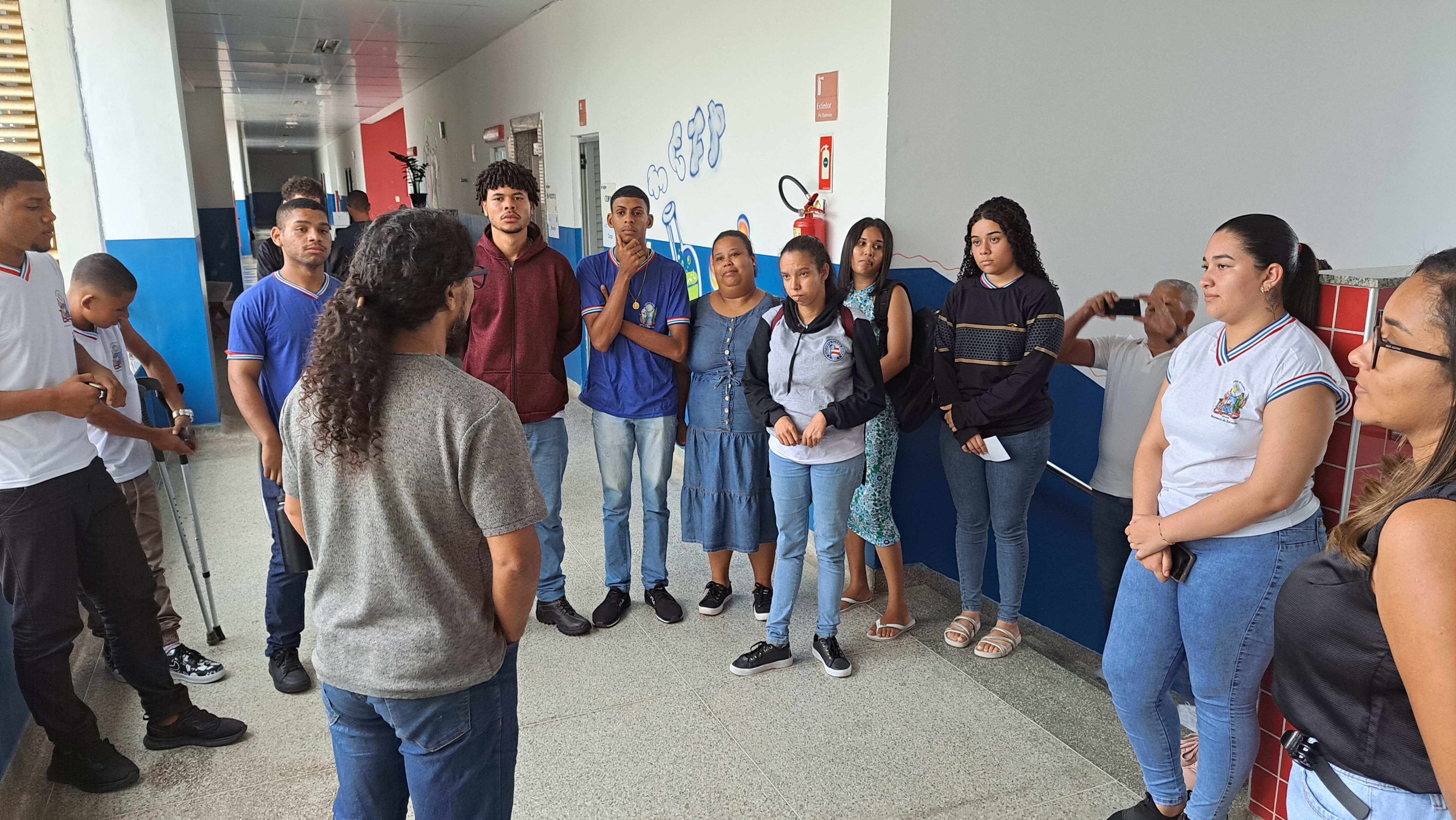 A programação teve início com uma apresentação institucional sobre o campus Amargosa, seguida por uma intervenção cultural realizada por estudantes do curso de Licenciatura em Educação do Campo, que também compartilharam informações e experiências sobre o curso com os visitantes.
