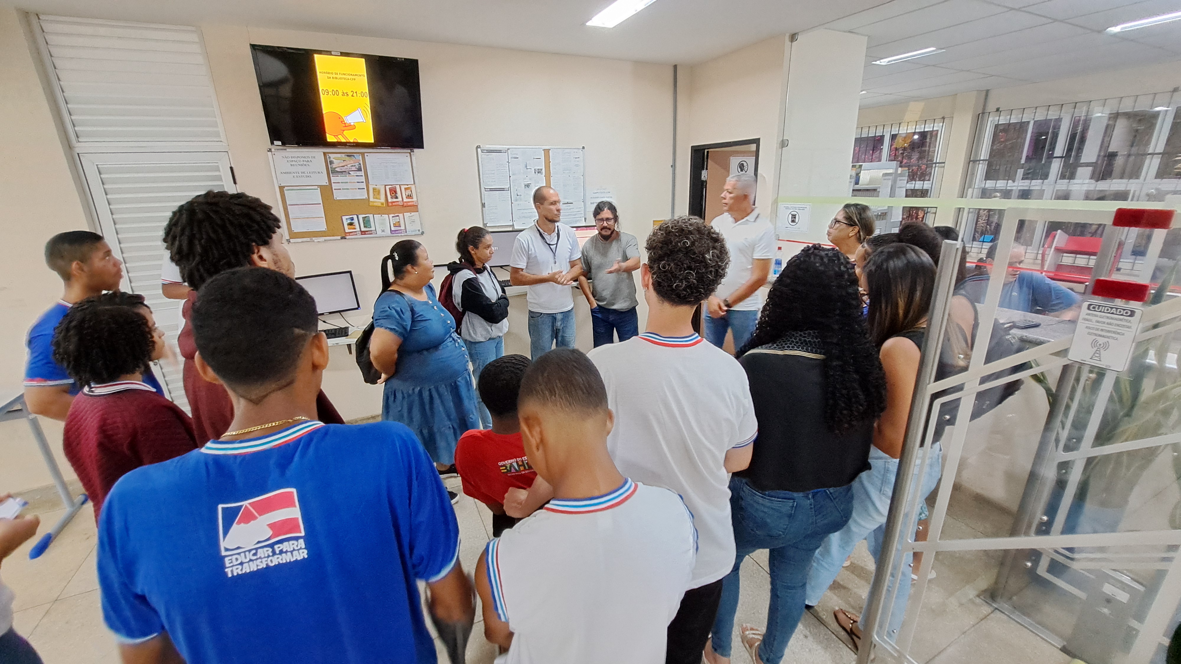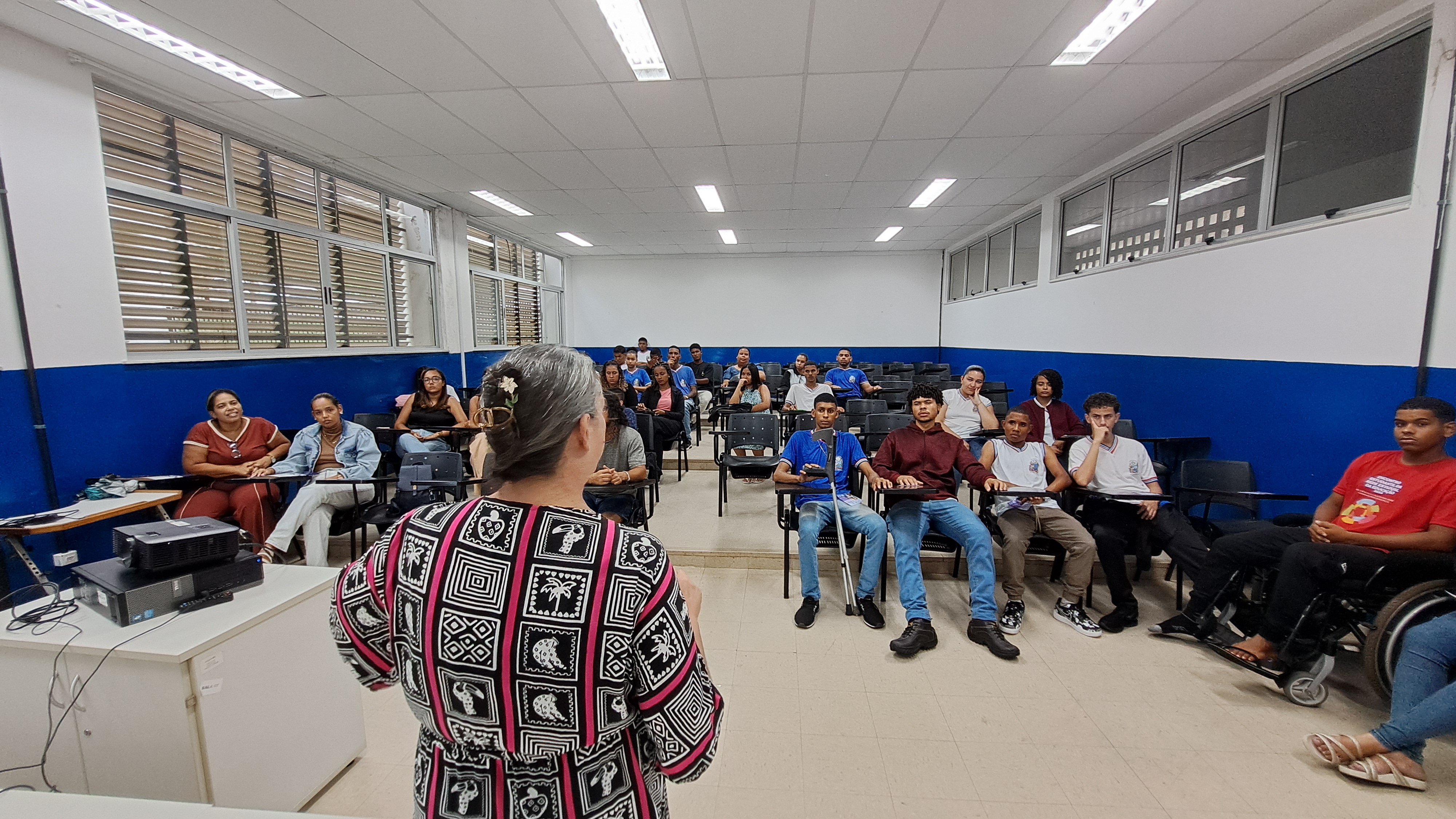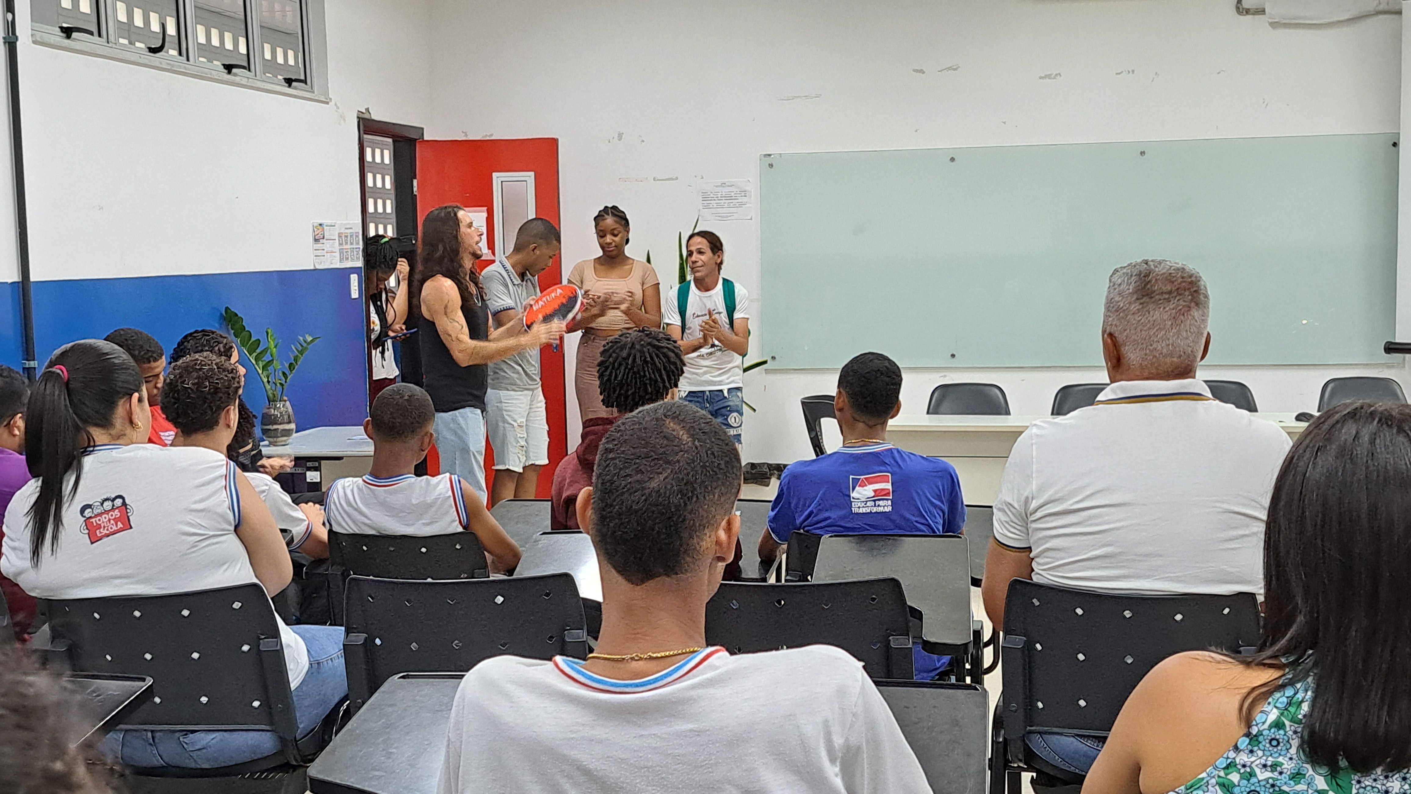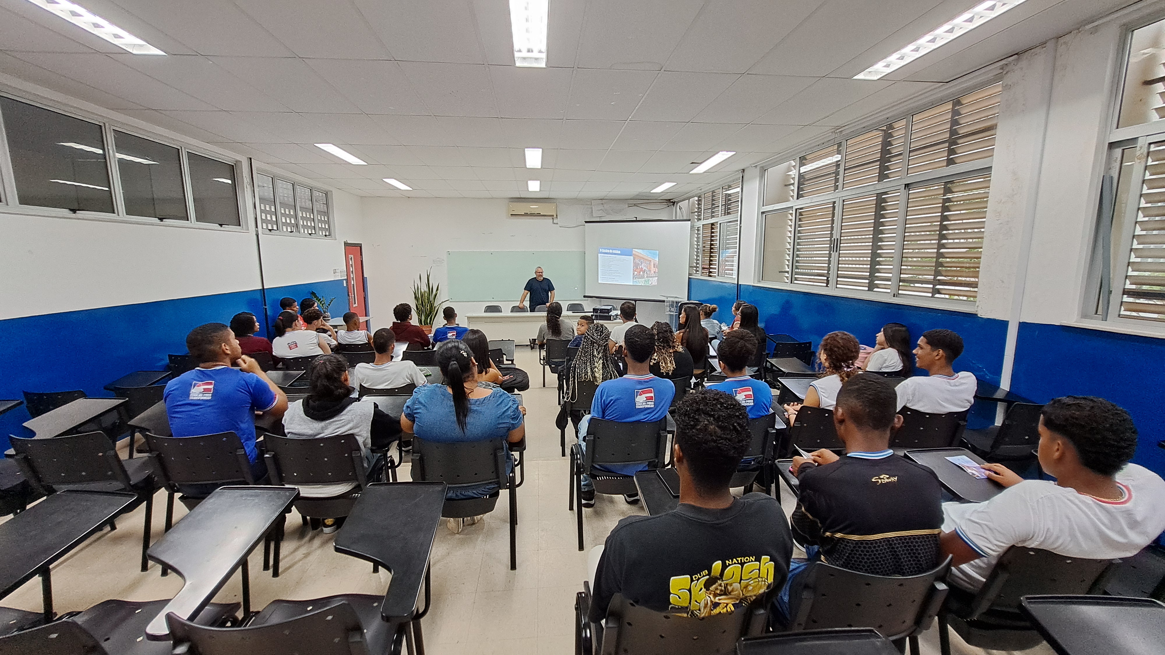 A programação teve início com uma apresentação institucional sobre o campus Amargosa, seguida por uma intervenção cultural realizada por estudantes do curso de Licenciatura em Educação do Campo, que também compartilharam informações e experiências sobre o curso com os visitantes.