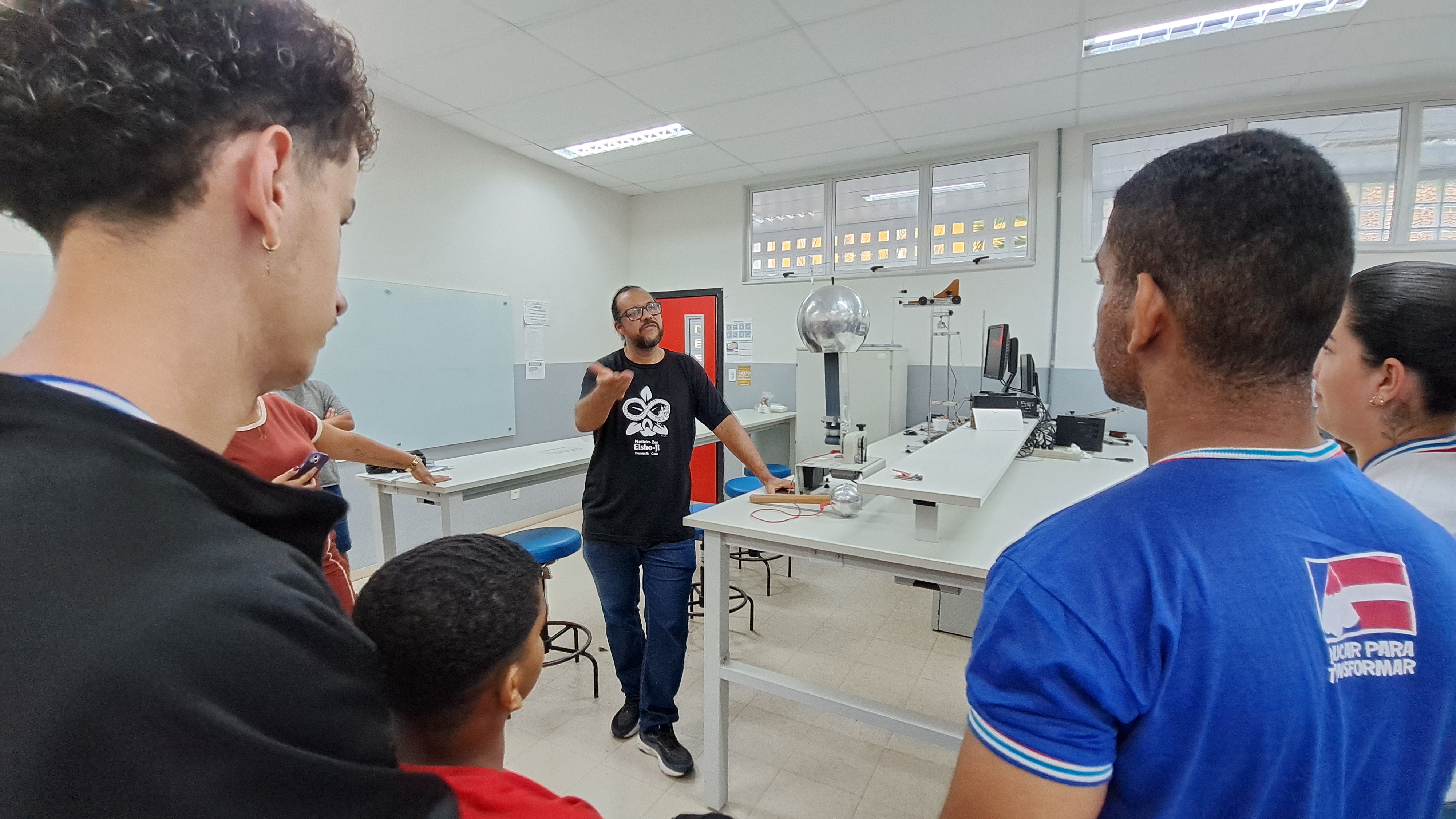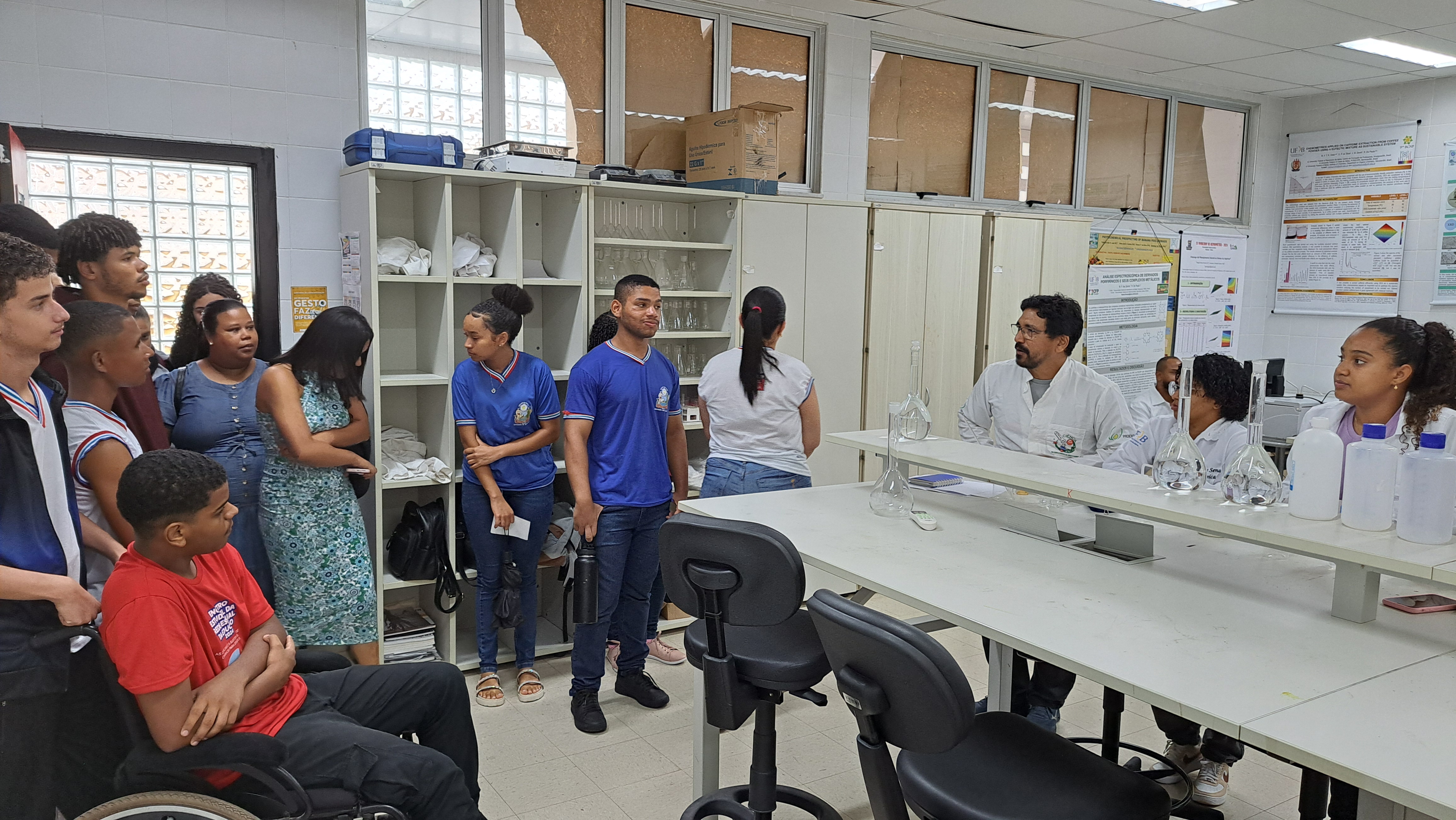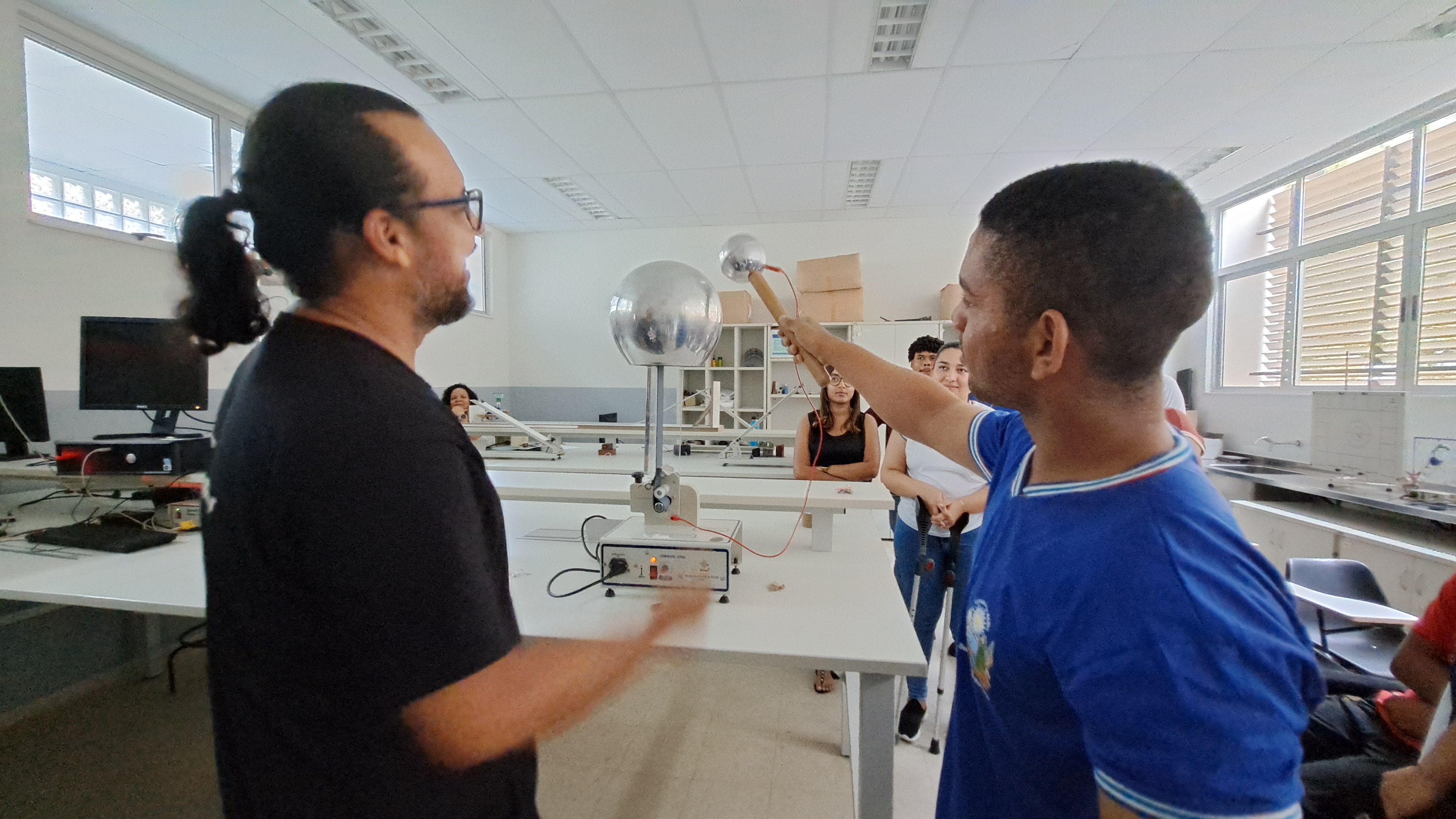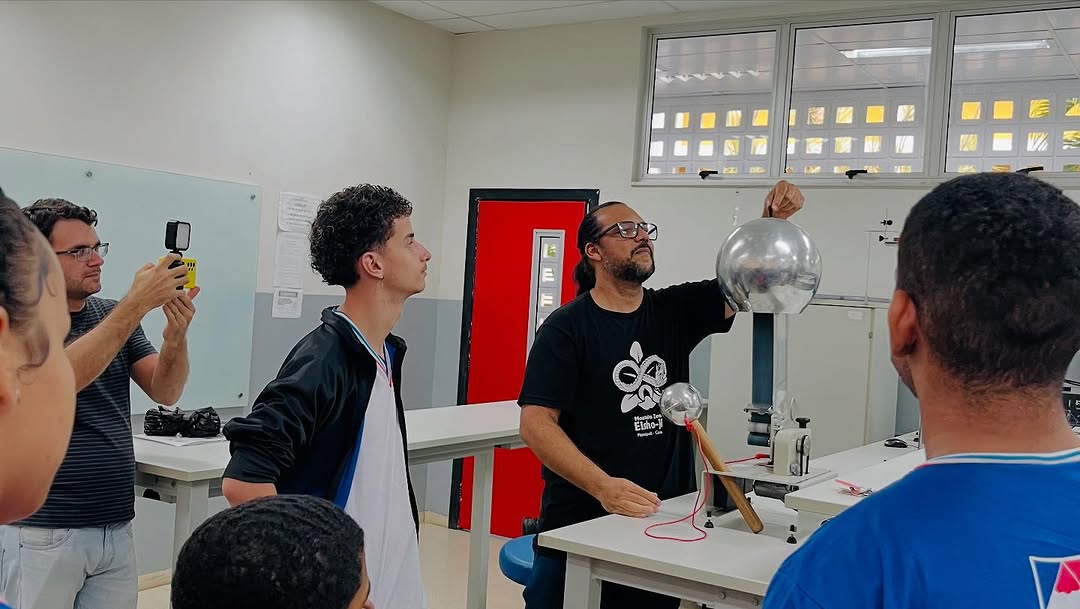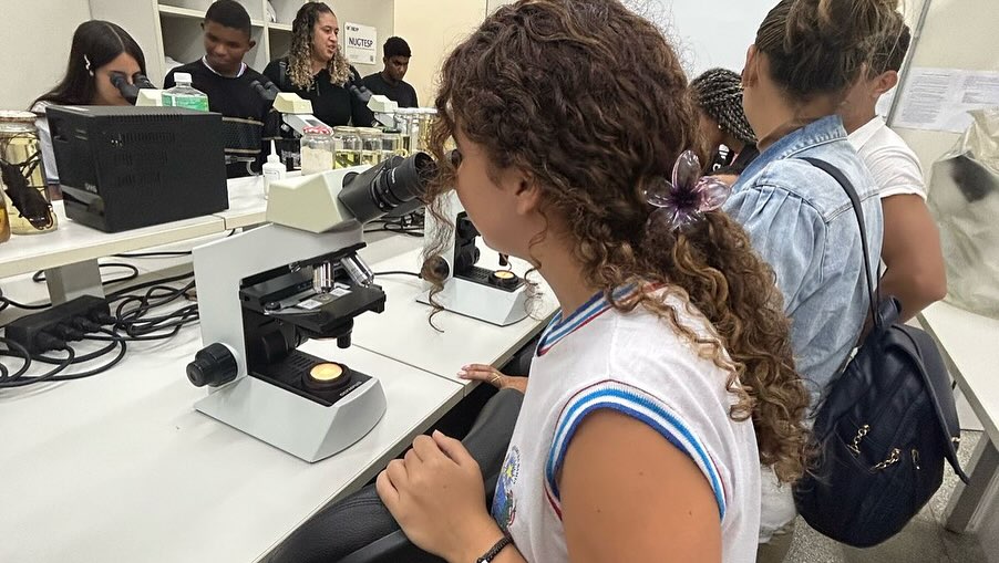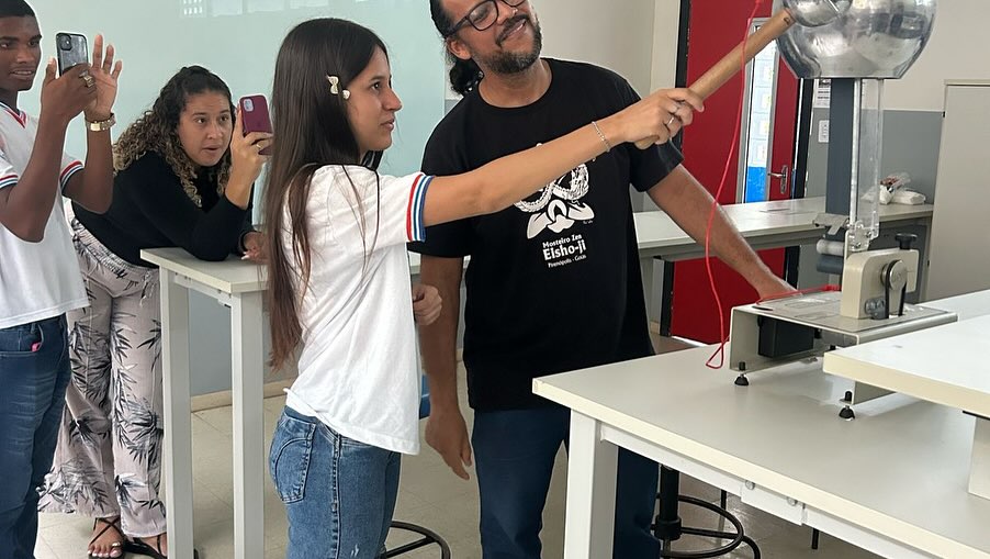 Em seguida, sob a condução do professor Fábio Falcão, os estudantes participaram de um tour pelas instalações do campus. Visitaram os laboratórios de Física, Química, Biologia e o Núcleo de Pesquisa e Estudos em Filosofia (NUPEF), onde puderam participar de demonstrações teóricas e práticas que despertaram grande interesse e curiosidade. O grupo também conheceu os espaços destinados ao curso de Educação Física, incluindo seu laboratório, o Complexo Poliesportivo.