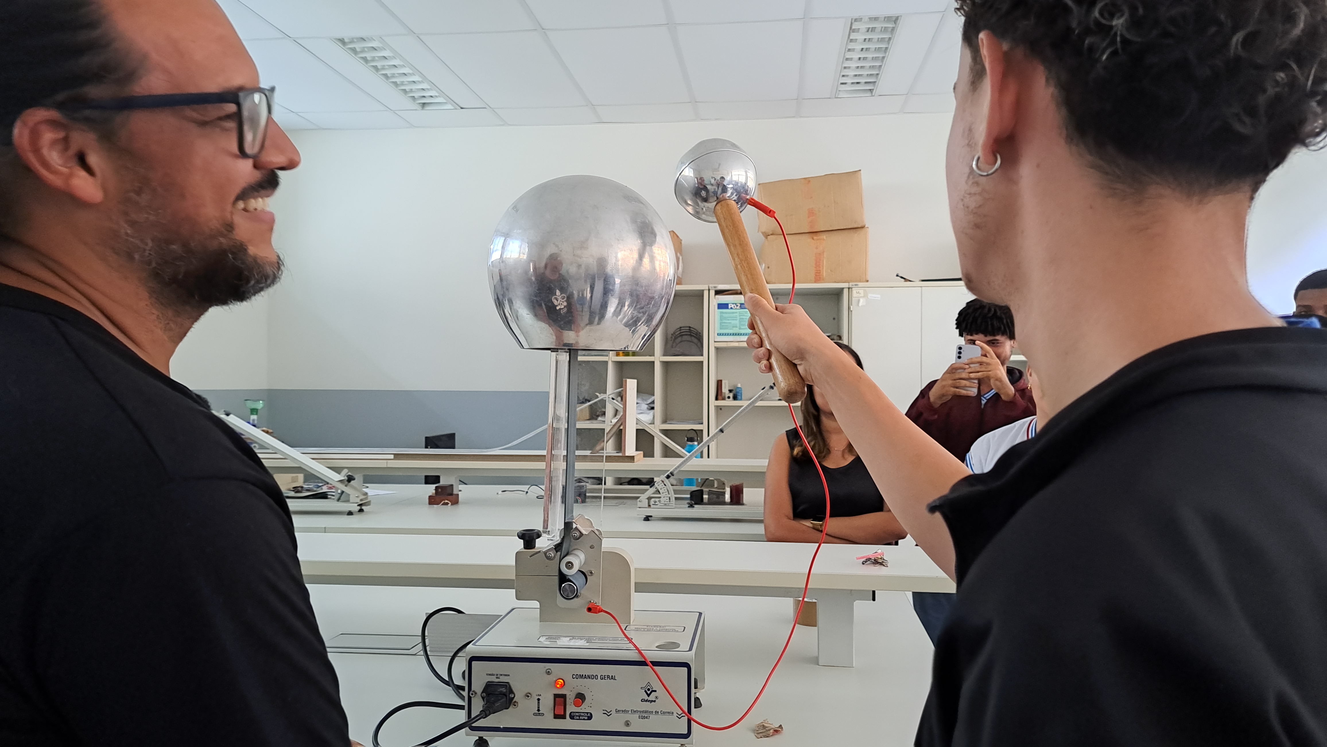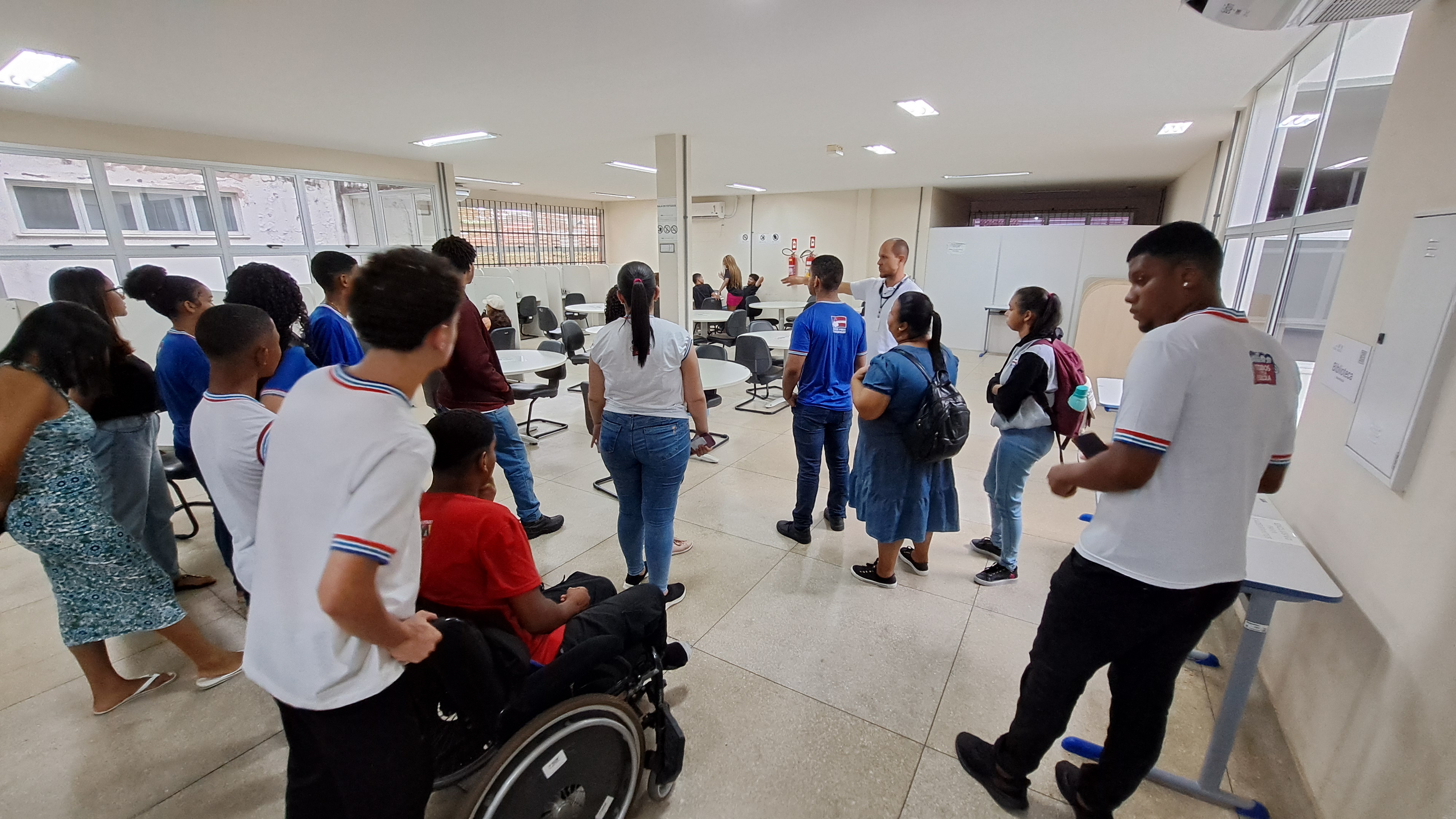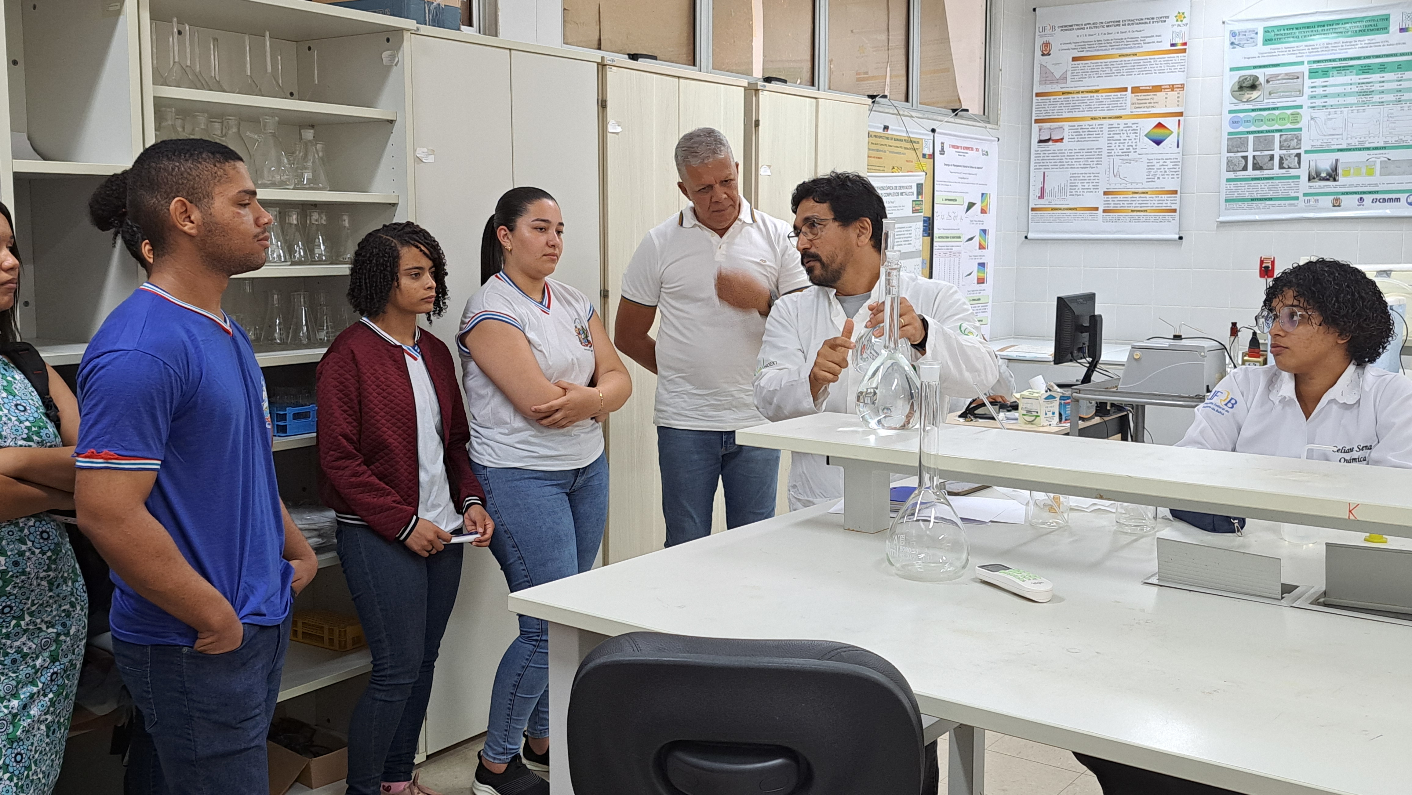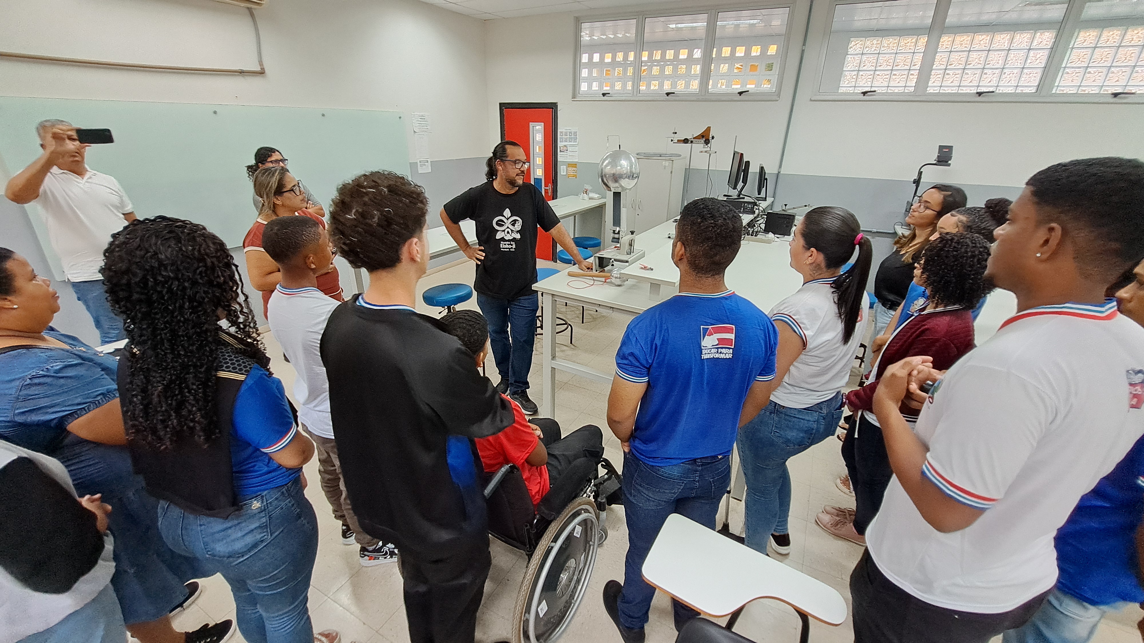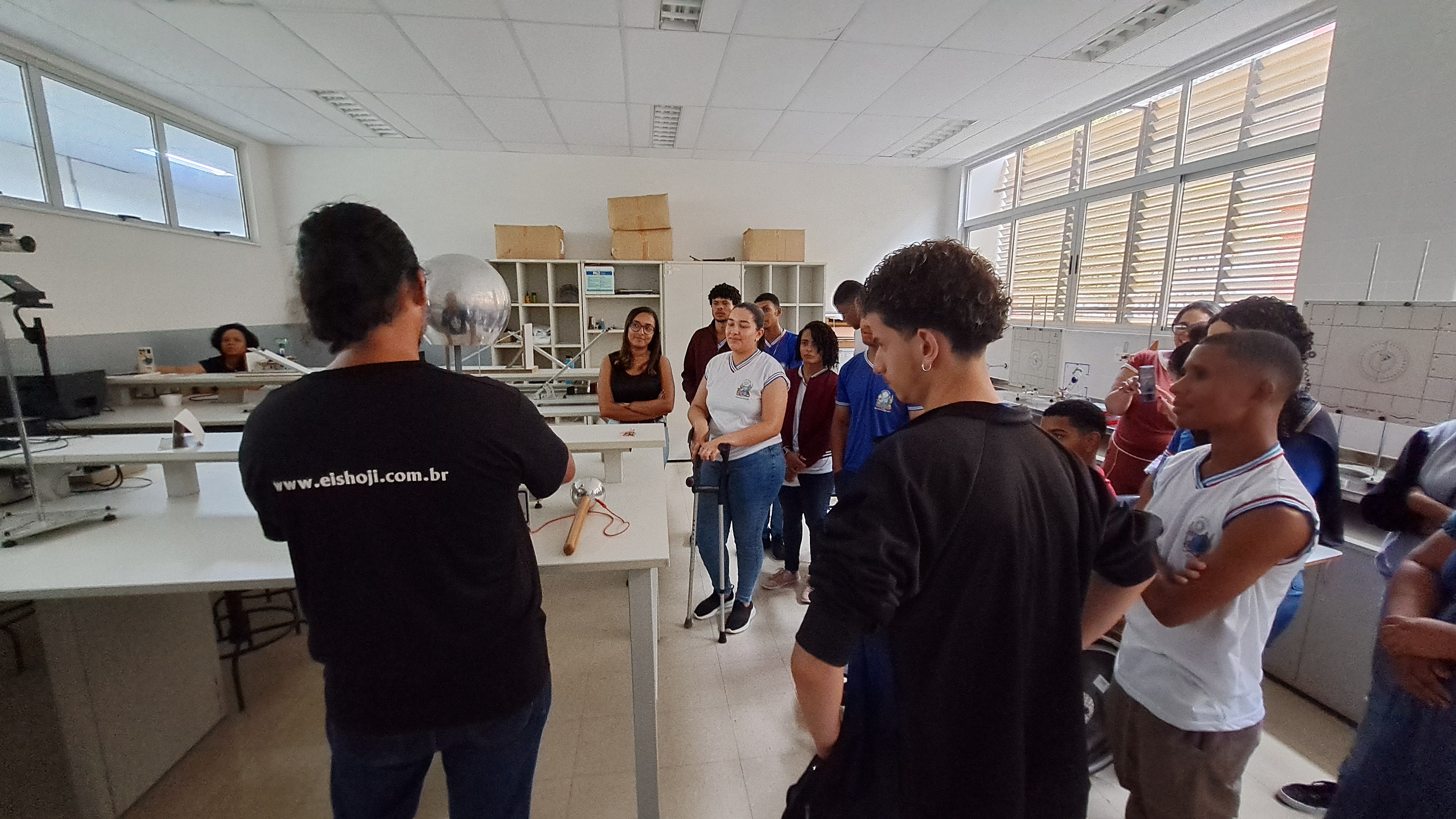 Em seguida, sob a condução do professor Fábio Falcão, os estudantes participaram de um tour pelas instalações do campus. Visitaram os laboratórios de Física, Química, Biologia e o Núcleo de Pesquisa e Estudos em Filosofia (NUPEF), onde puderam participar de demonstrações teóricas e práticas que despertaram grande interesse e curiosidade. O grupo também conheceu os espaços destinados ao curso de Educação Física, incluindo seu laboratório, o Complexo Poliesportivo.