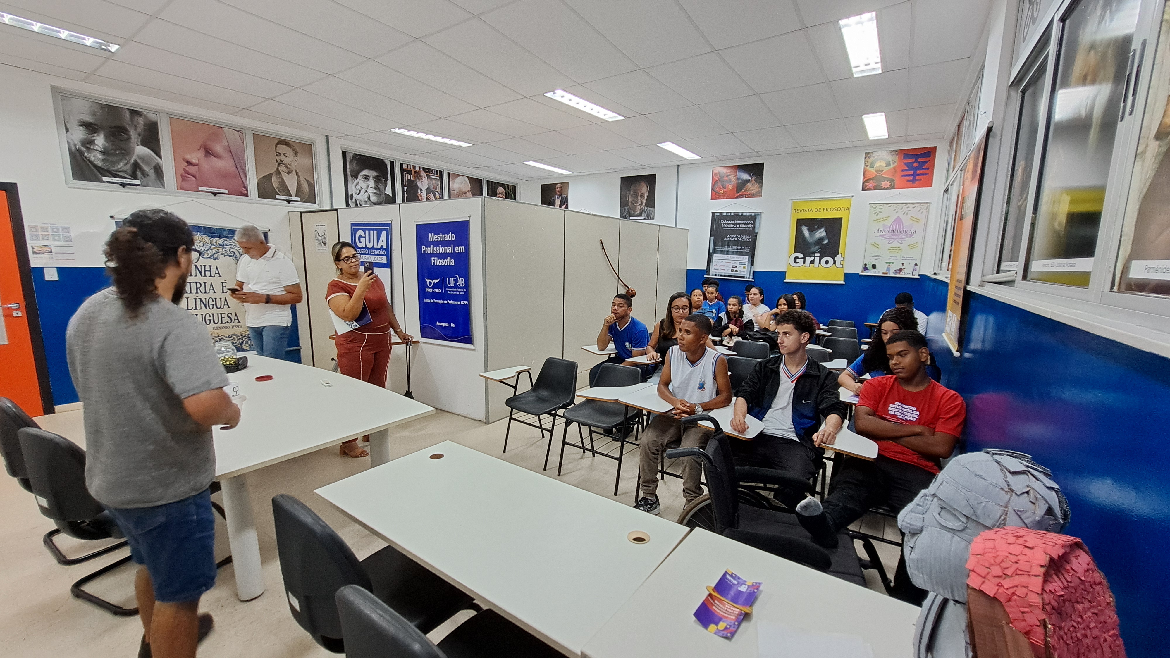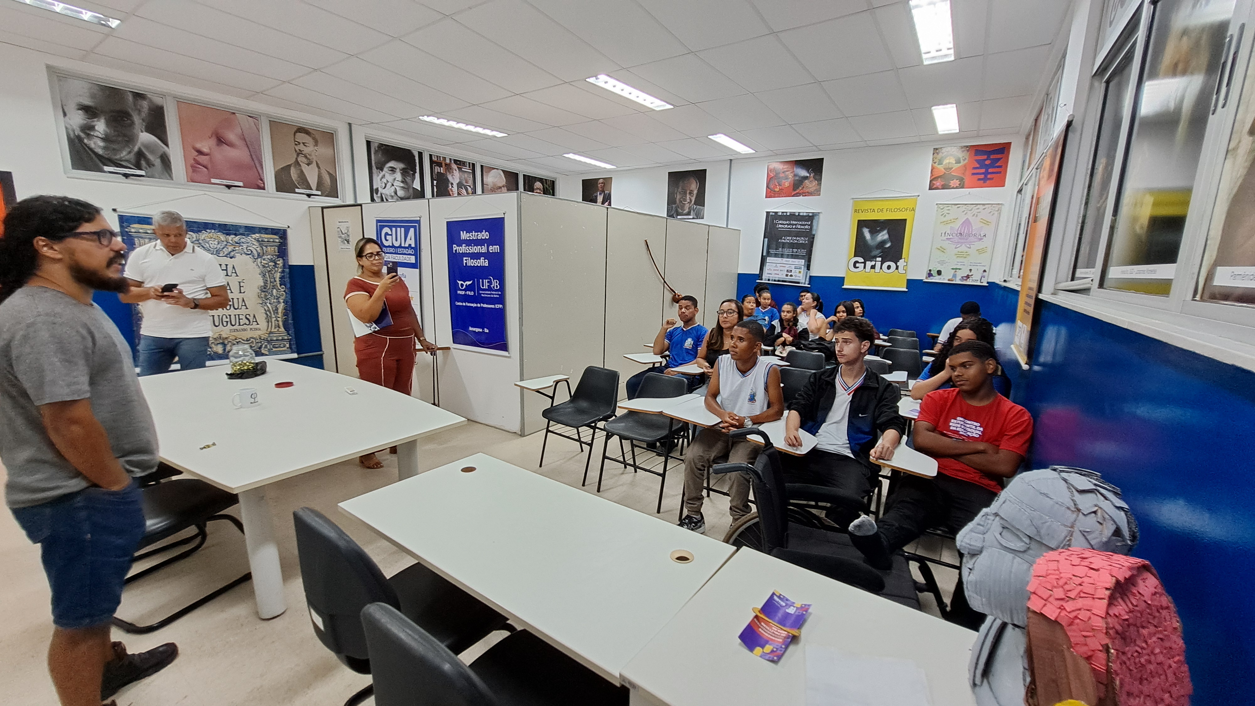 Os alunos foram recepcionados calorosamente pela diretora do Centro, professora Creuza Souza Silva, pelo vice-diretor e assessor Fernando Henrique Tisque dos Santos, e pelo professor Fábio Falcão Oliveira, coordenador do Colegiado do Curso de Licenciatura em Filosofia.