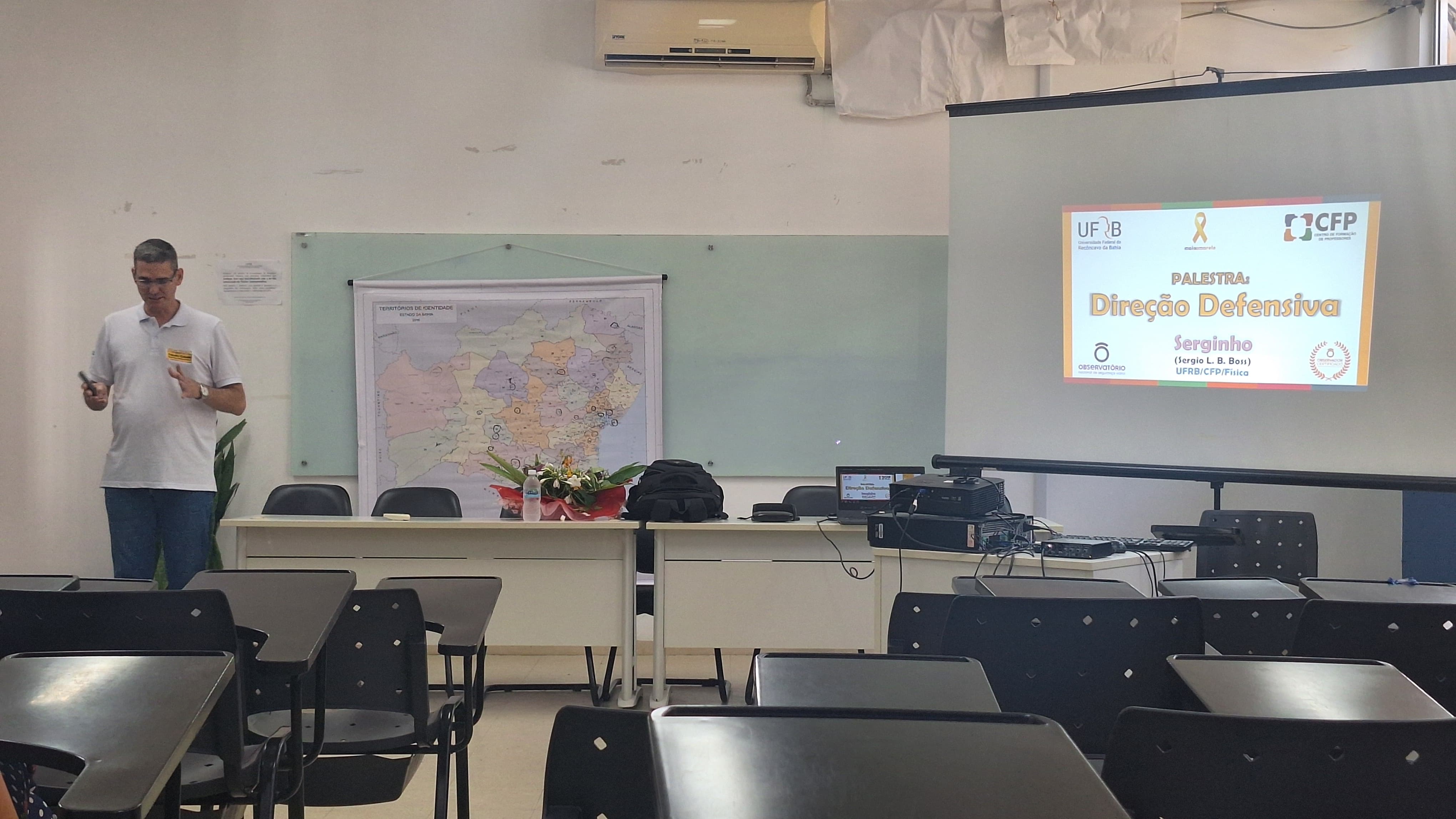 A palestra teve como objetivo principal orientar os participantes sobre práticas de segurança no trânsito, prevenção de acidentes e a importância da responsabilidade ao volante, sobretudo no contexto do trajeto casa-trabalho. A iniciativa reforça o compromisso do CFP/UFRB com a promoção da saúde e segurança de seus colaboradores, valorizando a vida como bem maior — como ressaltado no lema da ação: “Desacelere, seu bem maior é a vida!”.