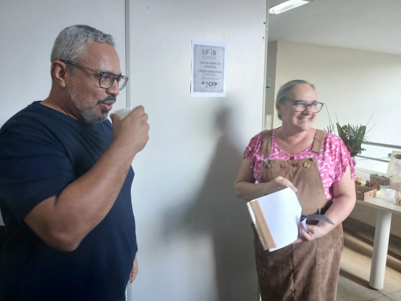 O evento foi organizado pelos servidores Jarciana Anunciação dos Santos de Sousa e Heder Peixoto, e conduzido com leveza e entusiasmo pela mestre de cerimônia Josemary da Guarda de Souza, que dinamizou o momento com uma atividade lúdica, envolvendo os presentes em uma atmosfera descontraída e participativa que celebrou a ireverente inauguração do "Salão Nobre da Direção". Estiveram presentes na ocasião a professora Creuza Souza Silva, diretora do CFP, e o professor Fernando Henrique Tisque, vice-diretor, que também se engajaram com alegria nas dinâmicas propostas.