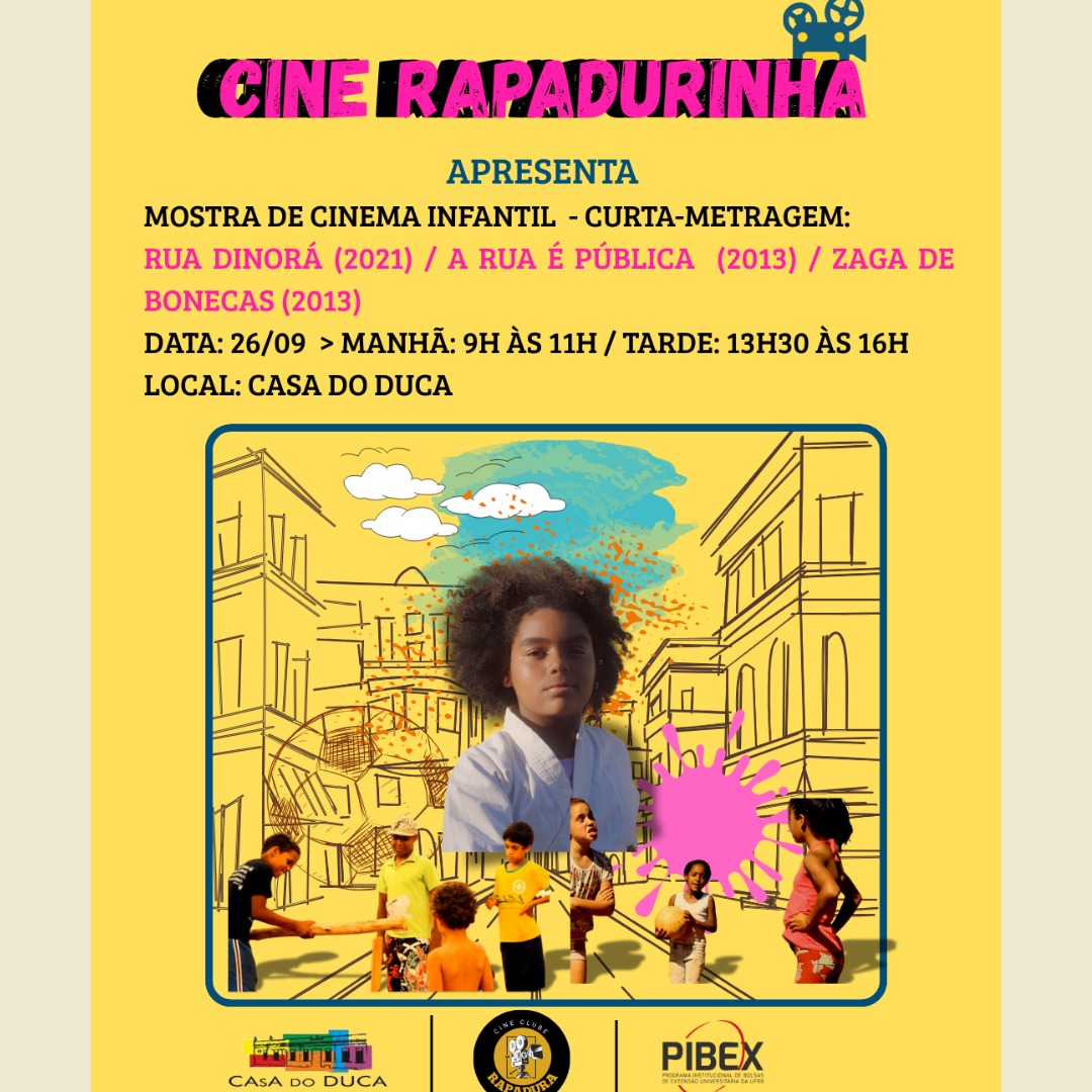 O projeto Cine Rapadurinha apresenta uma Mostra de Cinema Infantil com a exibição de três curtas-metragens que prometem encantar o público: Rua Dinorá (2021), A Rua é Pública (2013) e Zaga de Bonecas (2013). A iniciativa busca aproximar crianças e famílias do universo do cinema, valorizando a cultura e estimulando a imaginação por meio da sétima arte.