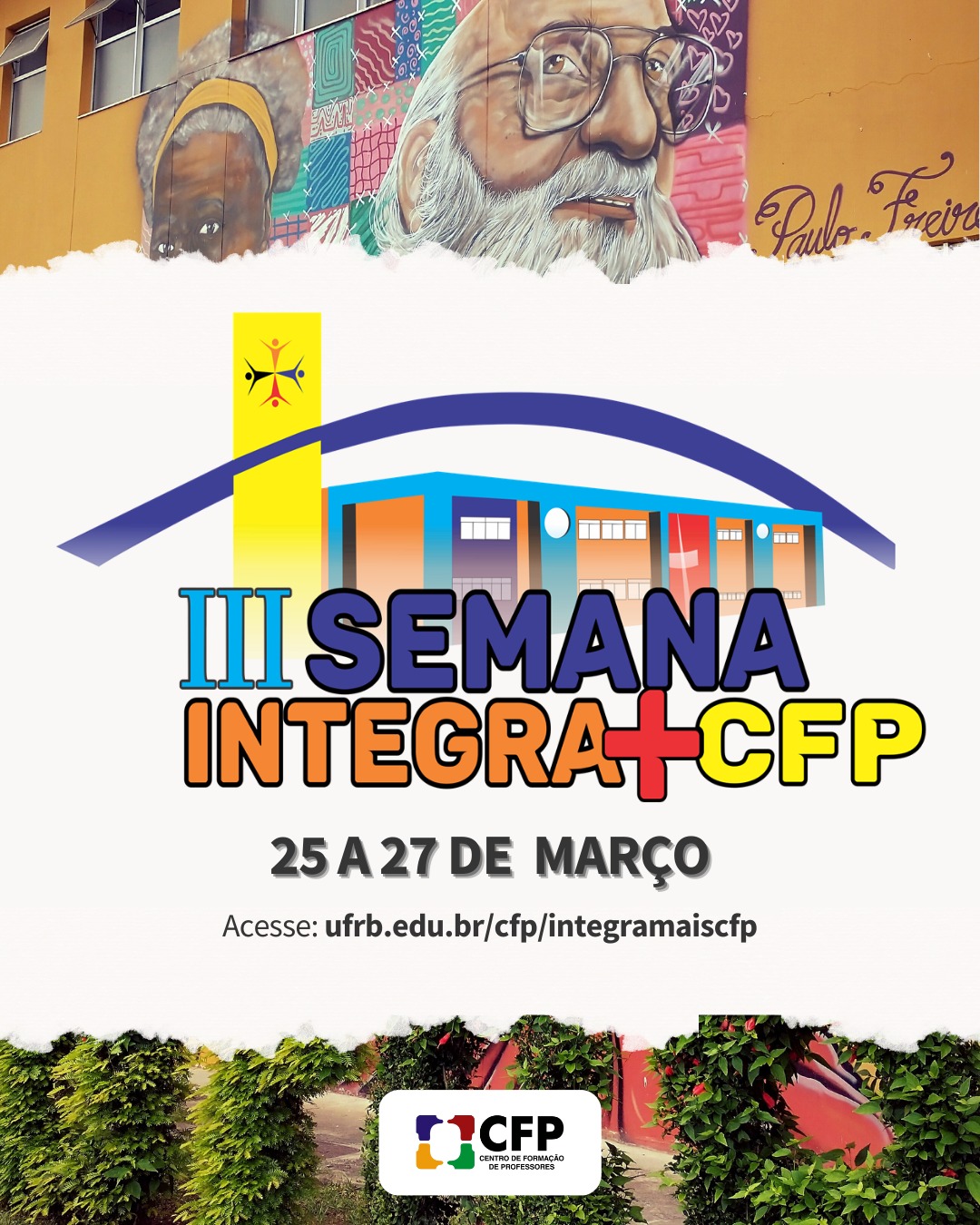 Programação disponívem no site oficial:ufrb.edu.br/cfp/integramaiscfp