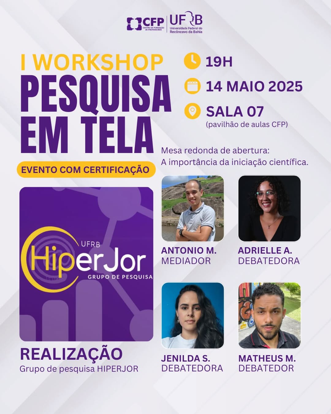 Mesa-redonda: A importãncia da Iniciação Científica: Ttrabalhos de pesquisa no Grupo HIPERJOR/UFRB