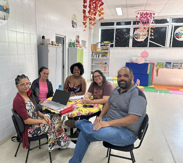 Ainda pela manhã, as coordenadoras se reuniram com Fernanda Souza, coordenadora do projeto Cirandas do Saber, e com a estudante Vanuza, integrante do Coletivo Lobas. O projeto Cirandas do Saber visa apoiar a permanência de mães universitárias no CFP, articulando estratégias para que possam conciliar os estudos com os cuidados maternos, a partir de uma abordagem coletiva e interseccional. A coordenadora de Políticas Afirmativas, Rafaela Lima, elogiou a iniciativa e destacou a importância de institucionalizar ações que reconheçam a parentalidade no contexto universitário. “Infelizmente, a parentalidade ainda é pouco visibilizada nas políticas acadêmicas no contexto global. Mas estamos empenhadas em construir, junto ao Cirandas do Saber, uma proposta institucional para a UFRB que garanta suporte concreto, especialmente, às estudantes mães”, afirmou.