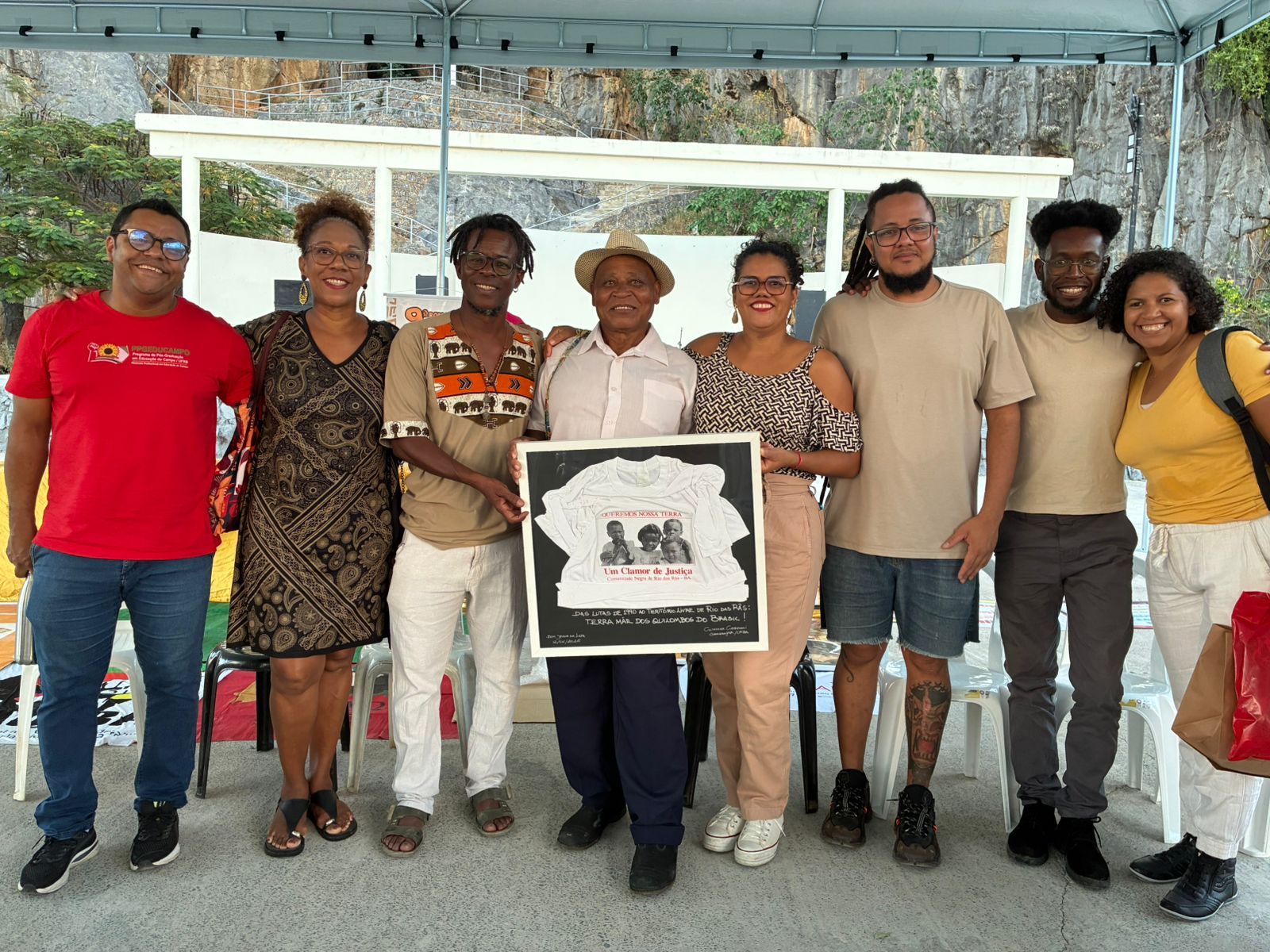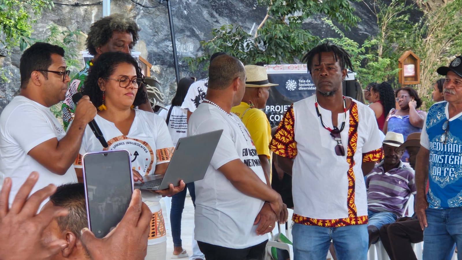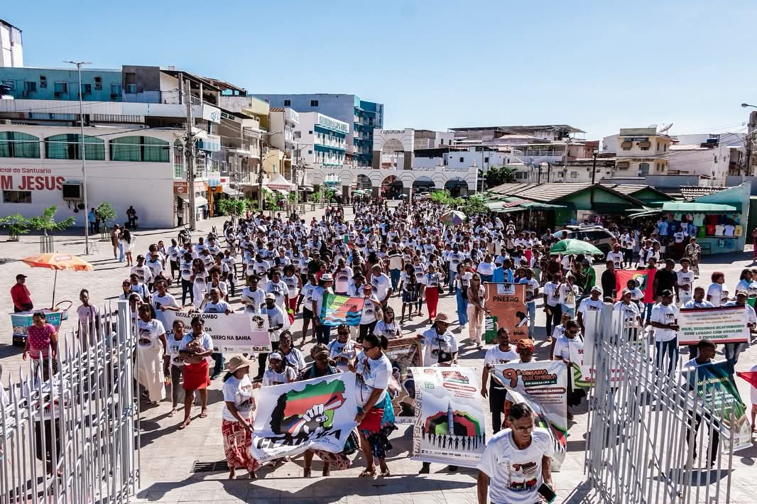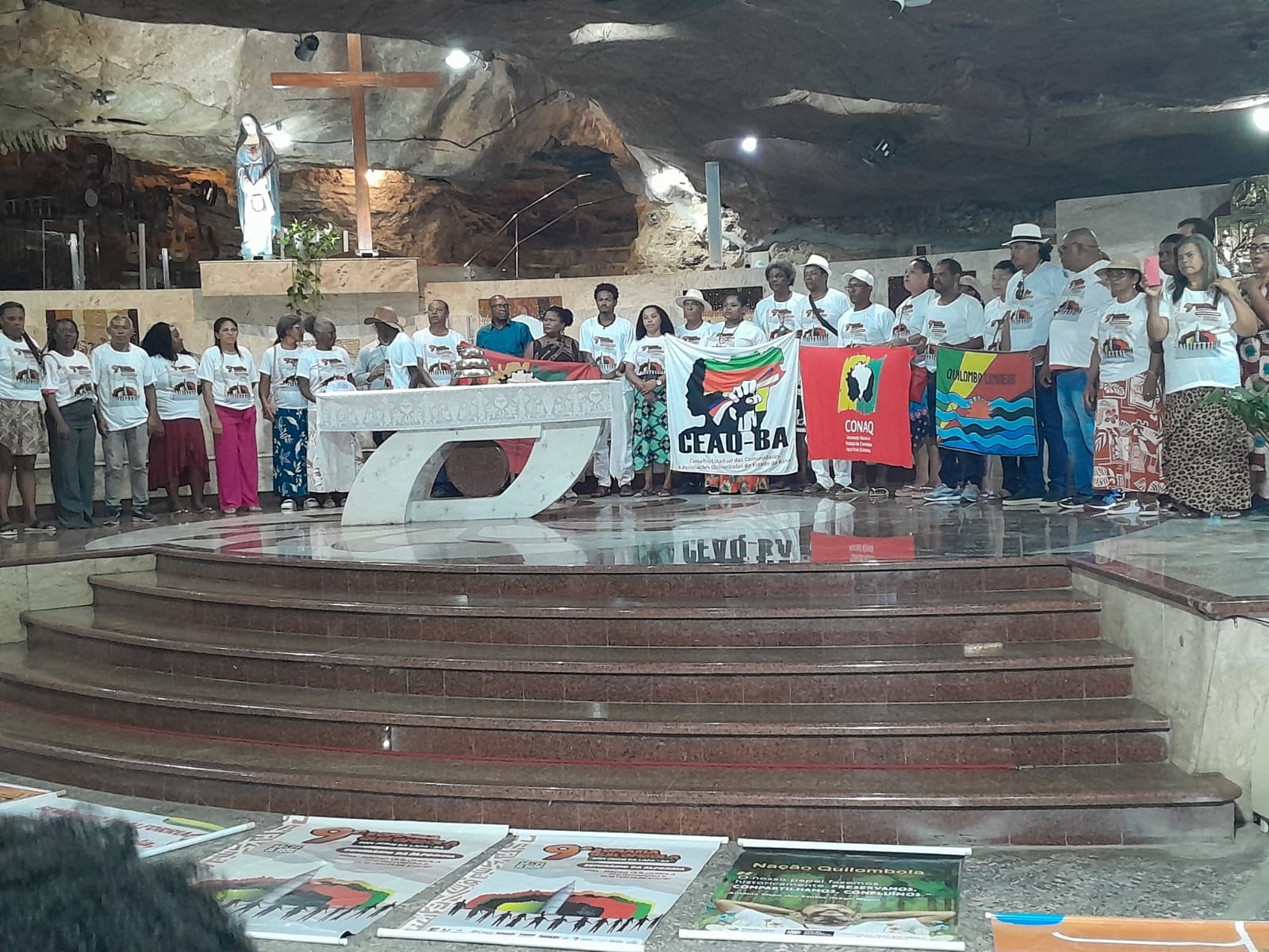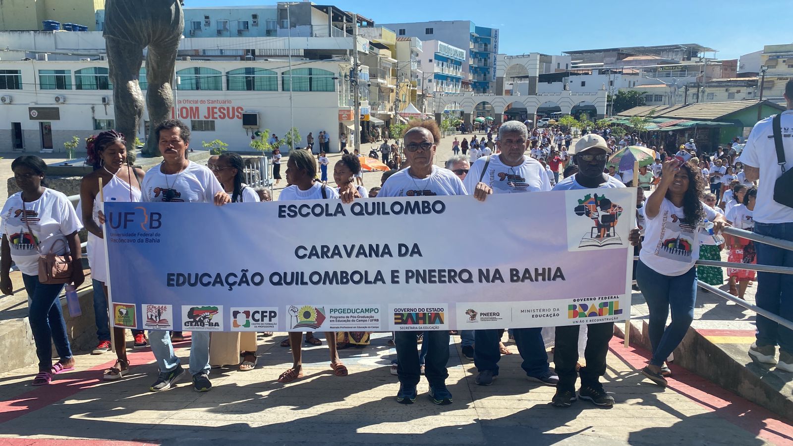 A Romaria Quilombola, organizada pelo Conselho Estadual das Comunidades Quilombolas, CEAQ-Ba e pela Coordenação da CONAQ na Bahia, com apoio do Coletivo Marilene Matos e do Escola Quilombo UFRB. Florisvaldo Rodrigues, Marilza Pereira, José Ramos de Freitas e Anainas Viana, além de Coordenadores Executivos da CONAQ na Bahia, são professores formadores do Curso de Licenciatura em Educação Escolar Quilombola (PARFOR/UFRB).