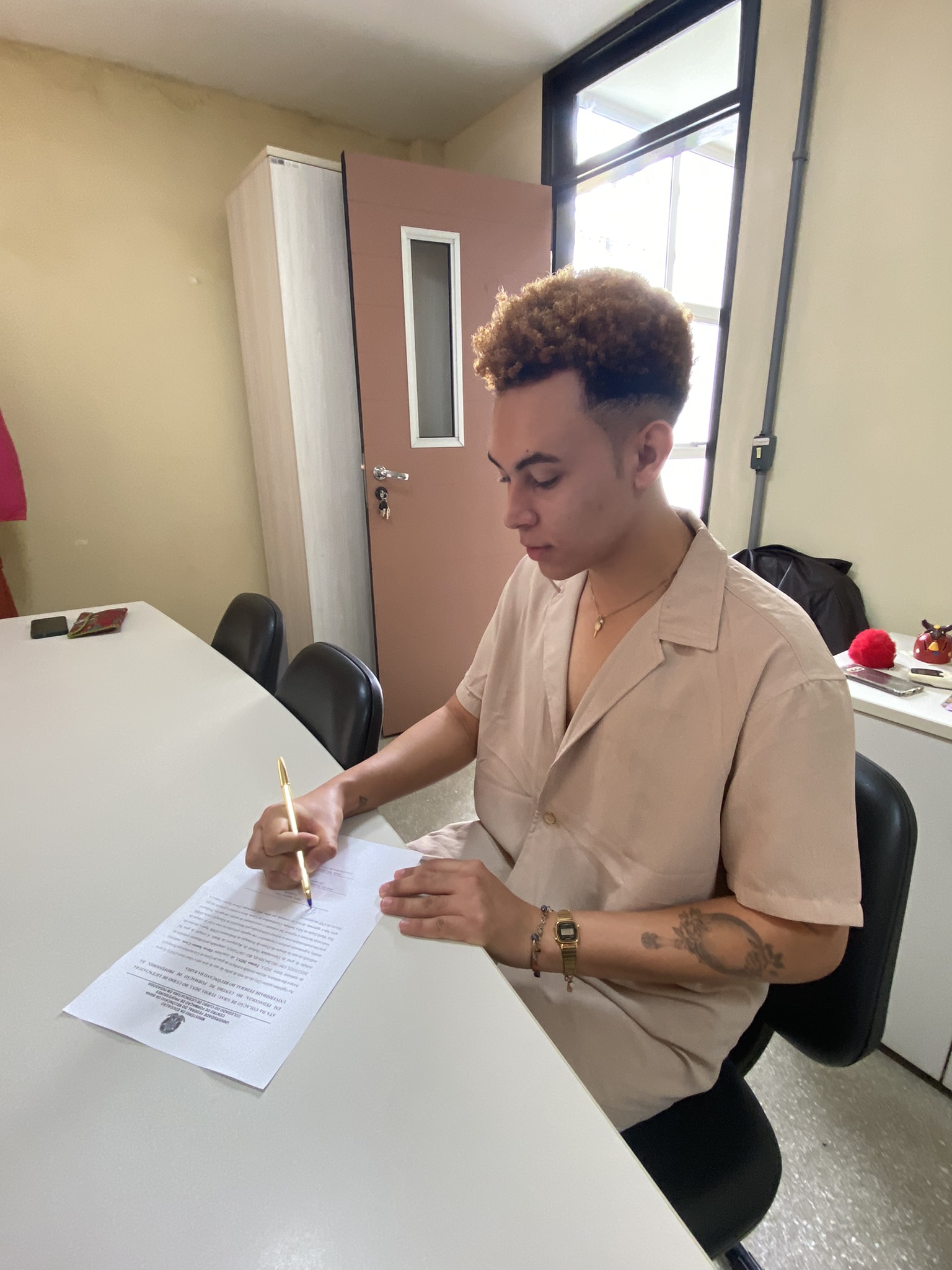 A colação de grau de Flávio foi realizada no dia 24 de julho, em uma cerimônia realizada na sala da Direção do Centro de Formação de Professores (CFP/UFRB), em Amargosa (BA). Estiveram presentes a coordenadora do curso de Pedagogia, Profª Drª Maria Luzia da Silva Santana; o diretor em exercício do CFP, Prof. Dr. Fernando H. Tisque dos Santos e Maurício Sudré Almeida.