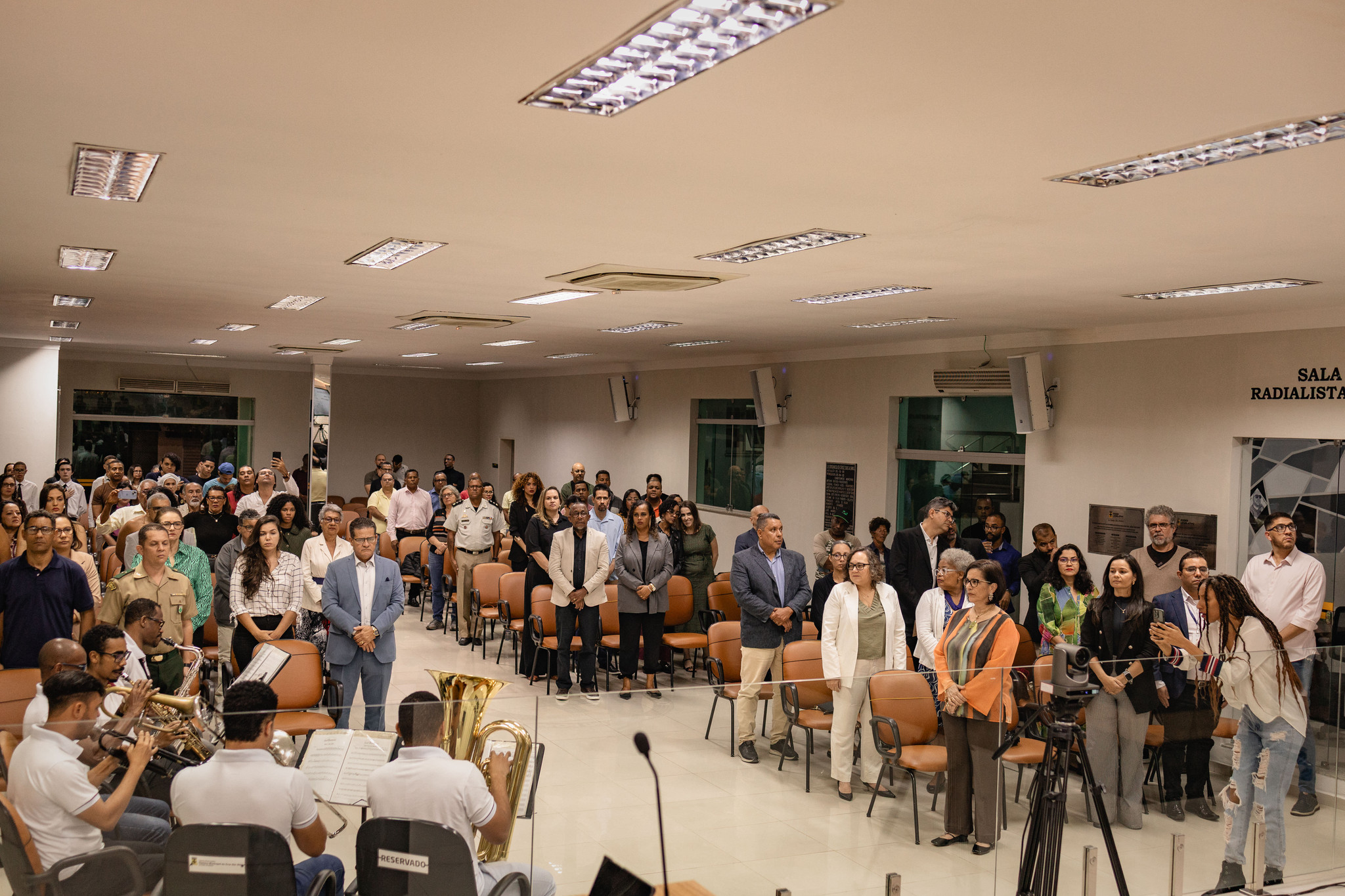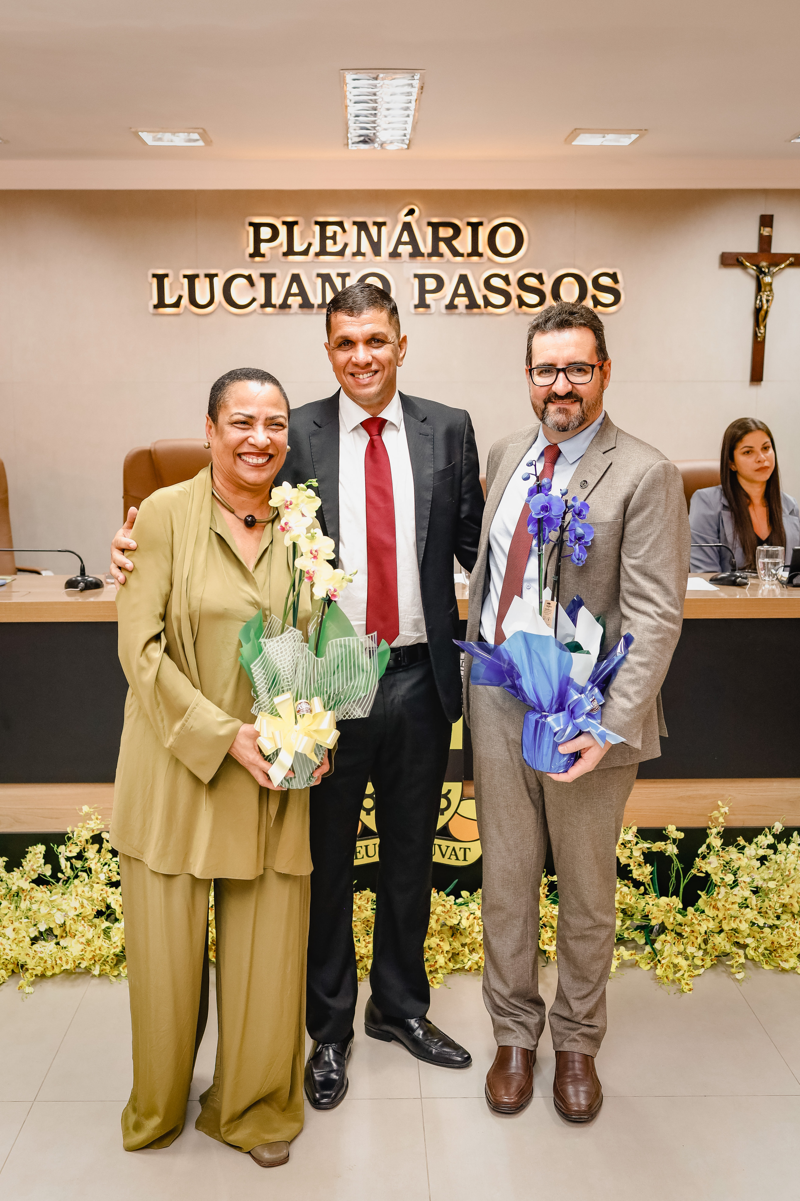 Estiveram presentes na sessão solene os(as) vereadores(as) Aline Brandão, André Eloy, Angélica, Bimba da Gente, Cepacol, Gerson Rubronegro, Marcelo Vieira, Nego da Farmácia e Roberto Ximba.