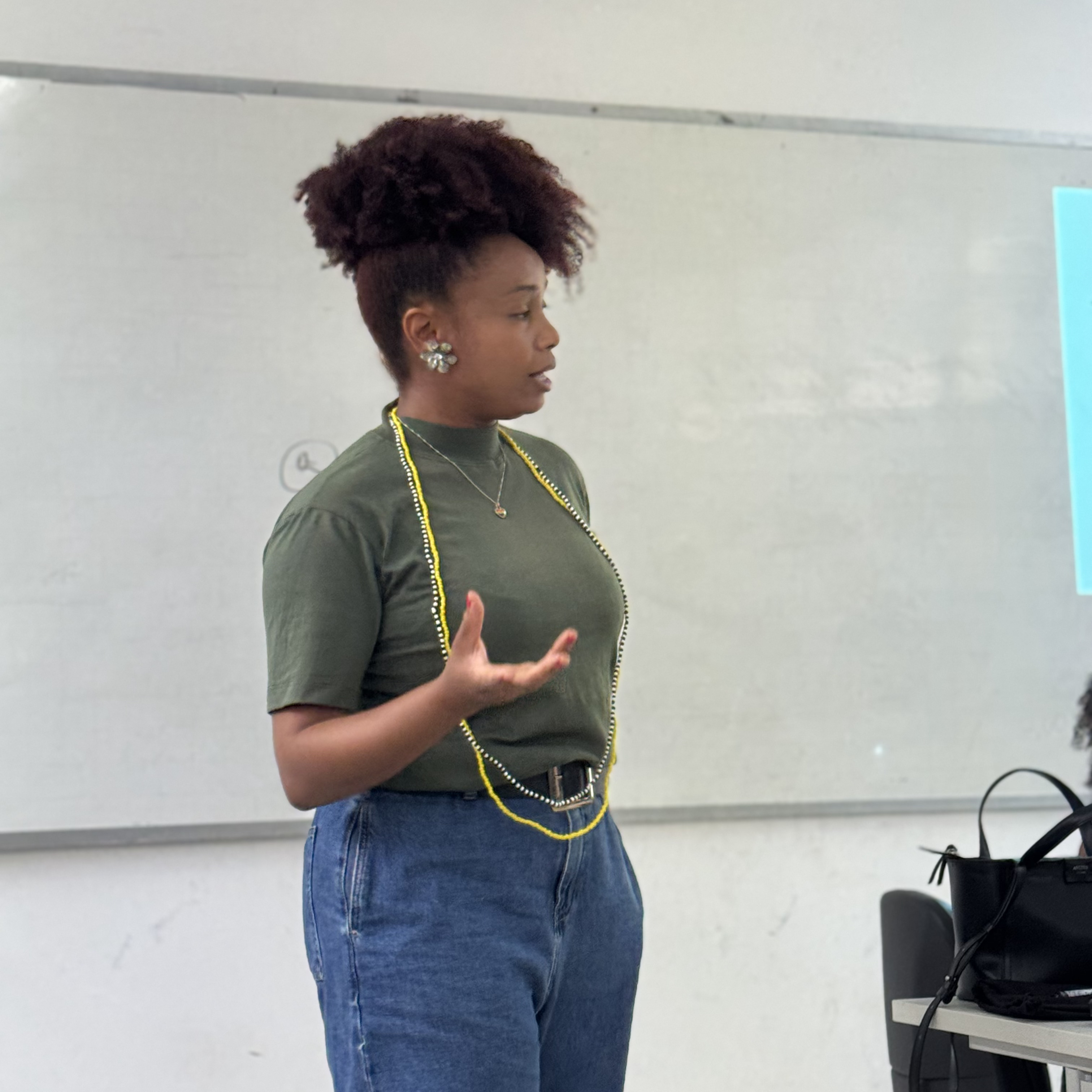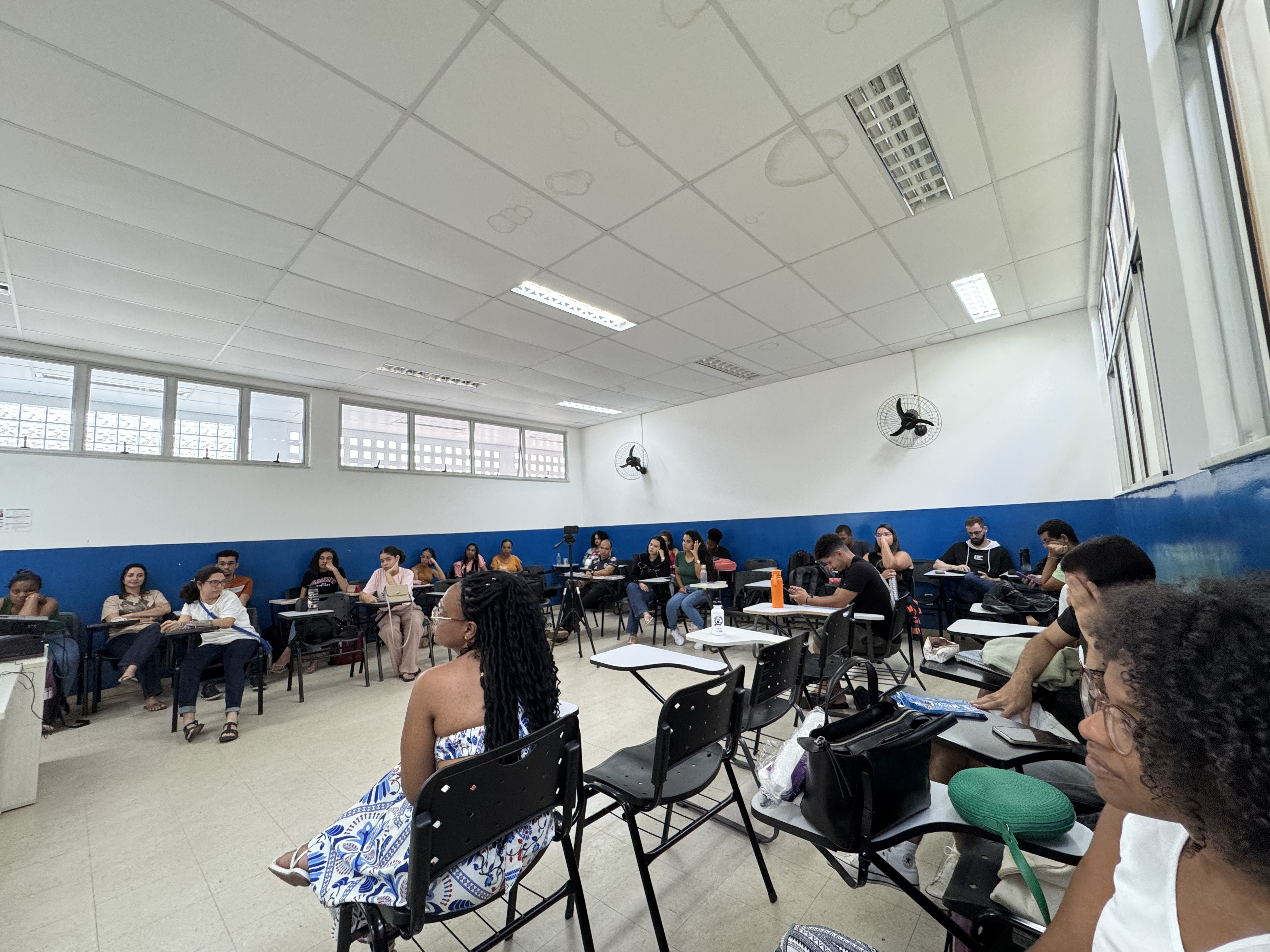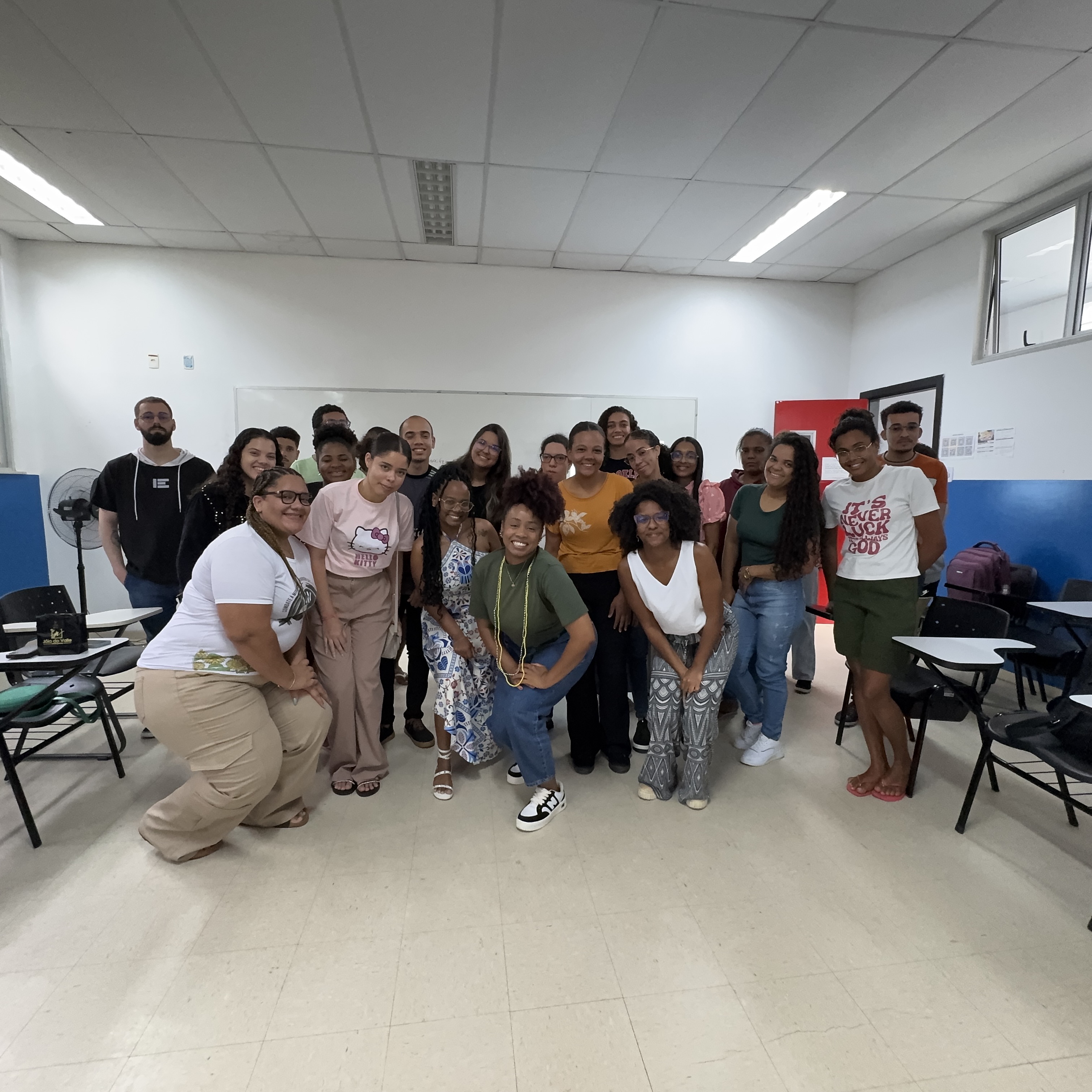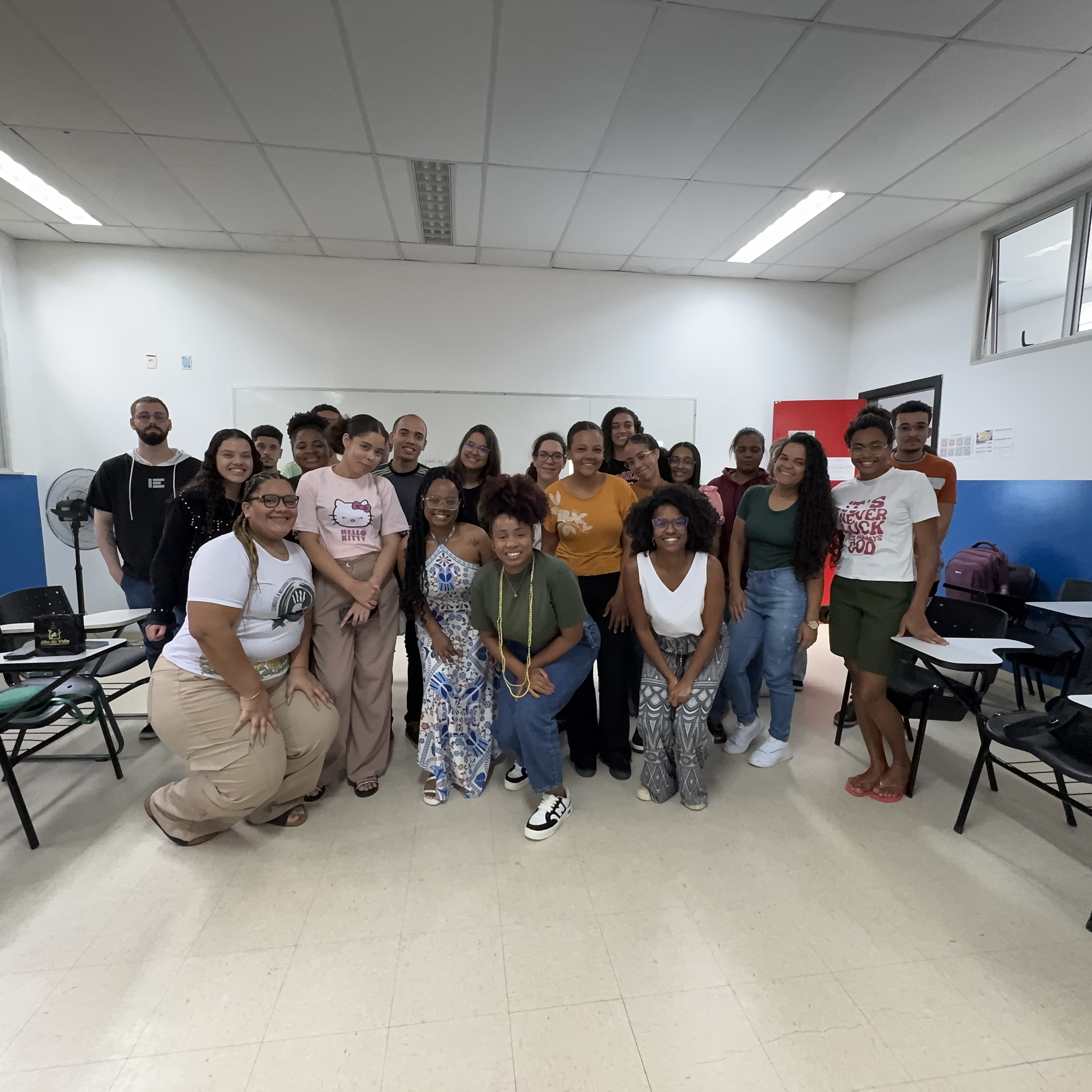 Nadiane nos contou e discutimos coletivamente sobre como essas intersecções influenciam em sua vida, e como isso também é um espelho do mundo social. Essa atividade foi realizada no âmbito das atividades do Procfemi com o apoio da PROPAAE e do Ministério das Mulheres.