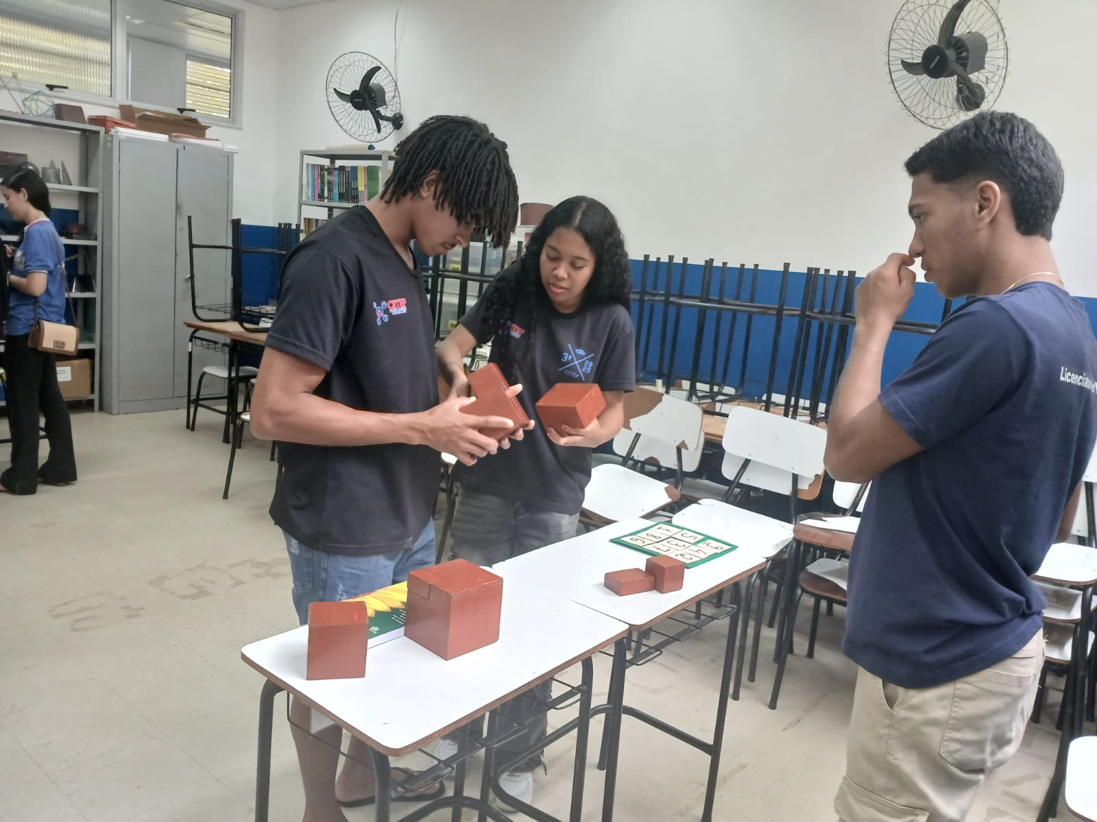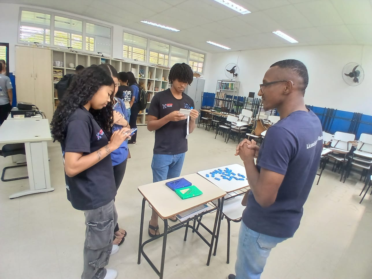 O grupo também esteve no Laboratório de Matemática, onde a ênfase foi a aplicação prática da disciplina em atividades lúdicas e experimentais. Os estudantes puderam interagir com materiais didáticos e jogos matemáticos que estimulam o raciocínio lógico e a resolução de problemas.