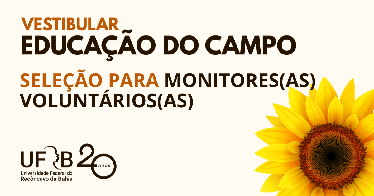 UFRB abre seleção para monitores voluntários do Vestibular de Educação do Campo 2026.1
