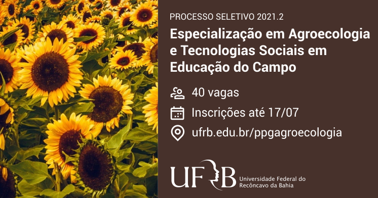 A Universidade Federal do Recôncavo da Bahia (UFRB) abre inscrições para o processo seletivo de ingresso de alunos regulares no Curso de Pós-Graduação Lato Sensu em Agroecologia e Tecnologias Sociais na ...