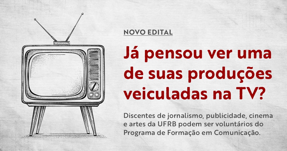 A Universidade Federal do Recôncavo da Bahia (UFRB), por meio das suas Pró-Reitoria de Extensão (PROEXT) e Assessoria de Comunicação (ASCOM), seleciona voluntários para atuarem no “Programa de Formação ...