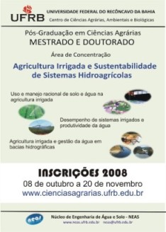 As inscrições visando à seleção e o ingresso para 2008 nos cursos de Pós-Graduação Stricto Sensu – Nível Mestrado e Doutorado foram encerradas dia 20/11.