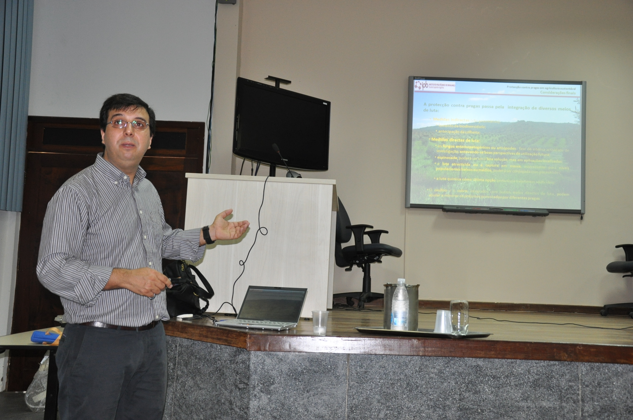 A palestra "Proteção contra pragas em Agricultura Sustentável" foi ministrada pelo professor José Alberto Pereira do Instituto Politécnico de Bragança (IPB), Portugal, na última sexta-feira, 08 de fevereiro. O evento reuniu professores e estudantes da Universidade Federal do Recôncavo da Bahia no auditório da Pró-Reitoria de Pesquisa e Pós-Graduação, campus de Cruz das Almas.