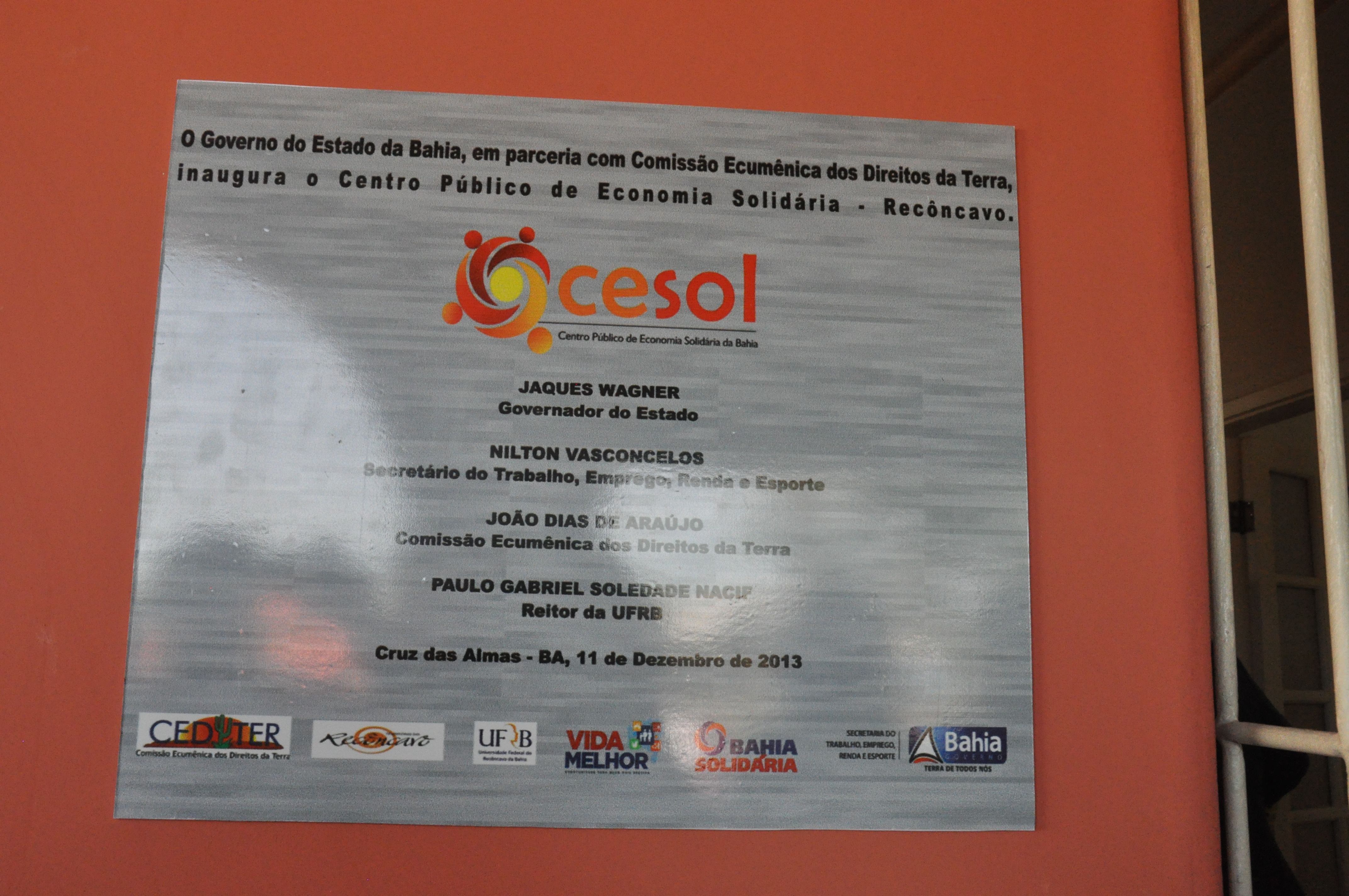 Após um ato ecumênico, a solenidade de inauguração do CESOL foi realizada com diversas autoridades. Estiveram presentes, o reitor Paulo Gabriel Nacif; a diretora do Centro de Ciência e Tecnologia em Energia e Sustentabilidade (CETENS), Tatiana Velloso; a chefe de gabinete da Secretaria do Trabalho, Emprego, Renda e Esporte do Estado da Bahia (SETRE), Olivia Santana; representantes da Superintendência de Economia Solidária, da Comissão Ecumência dos Direitos da Terra (CEDITER); do ColegiadoTerritorial do Recôncavo; da Secretaria de Planejamento do Estado da Bahia; do Fórum de Economia Solidária, além de movimentos sociais.