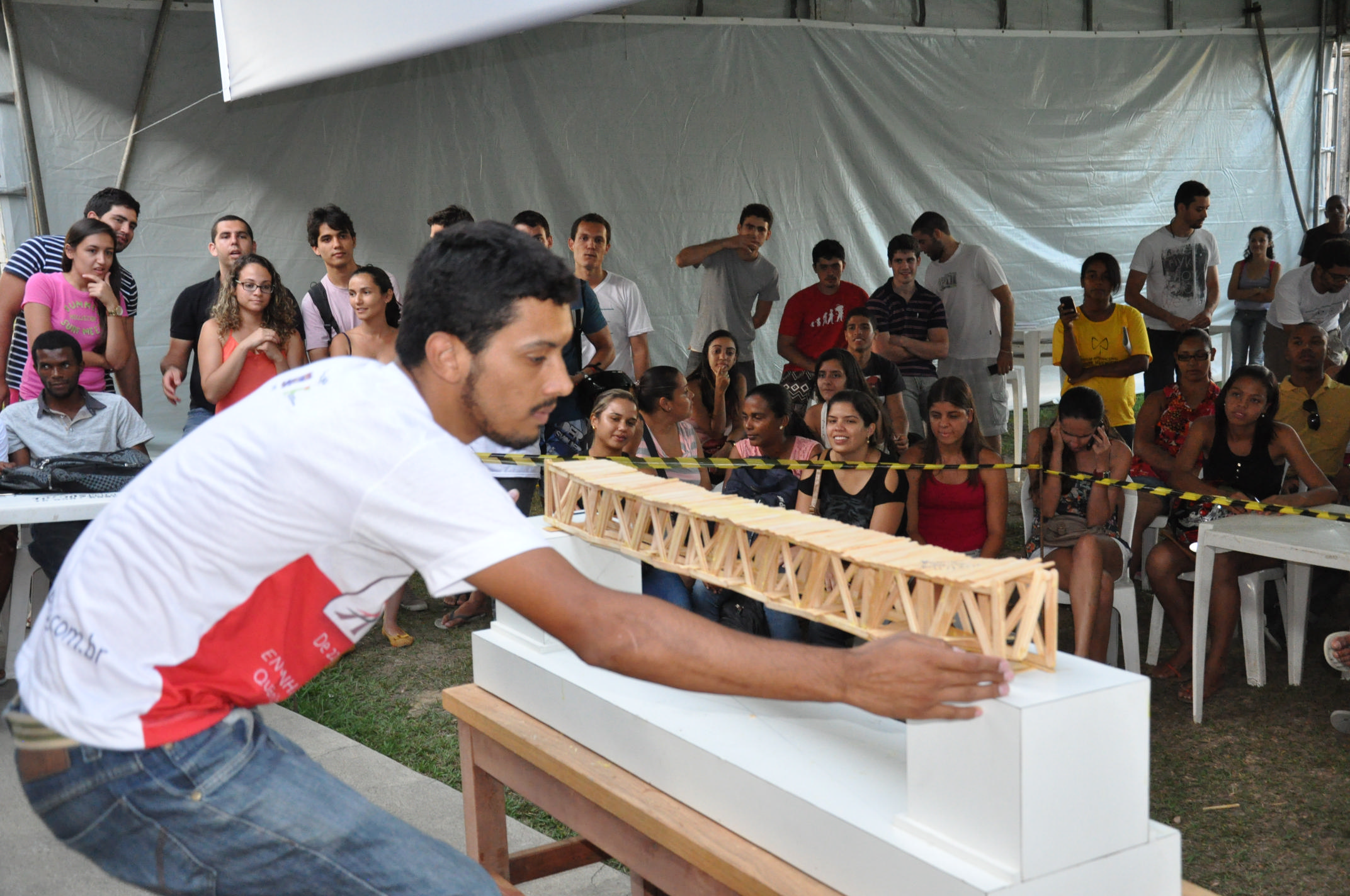 O II Torneio da Ponte Treliçada do Recôncavo foi realizado no campus de Cruz das Almas da Universidade Federal do Recôncavo da Bahia (UFRB), nos dias 10 e 11 de dezembro. Uma iniciativa do Centro de Ciências Exatas e Tecnológicas (CETEC), o evento avalia o protótipo de uma ponte construída com palitos de picolé de madeira e cola. O modelo deve resistir a uma carga crescente para análise do desempenho de sua estrutura.