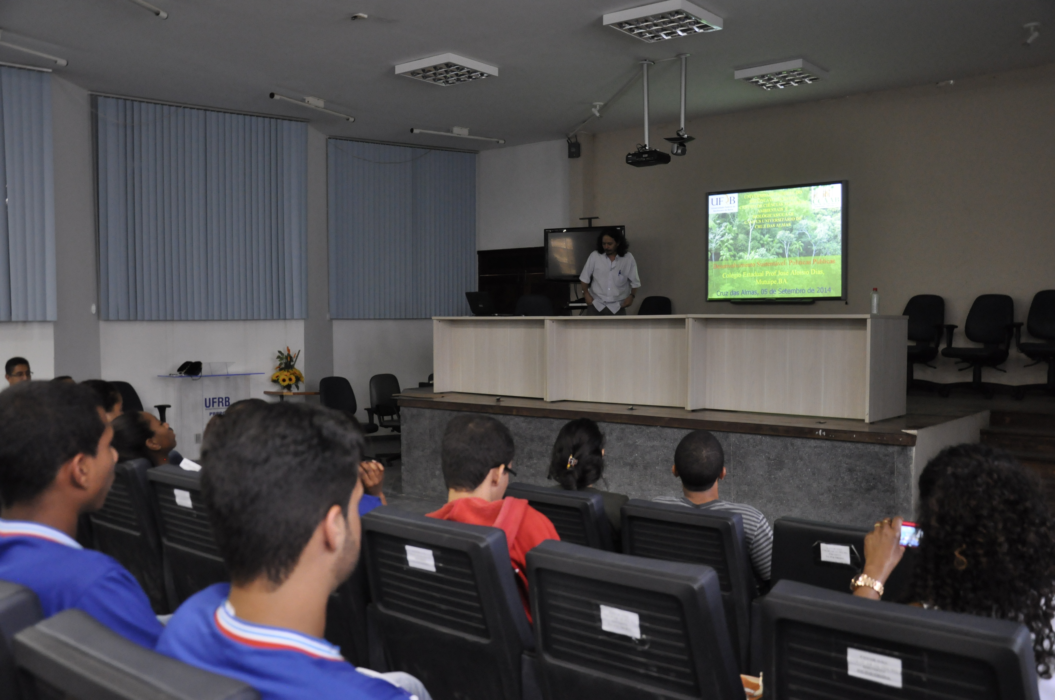 Na sequência da programação, uma palestra sobre desenvolvimento sustentável foi ministrada pelo professor do CCAAB, Milson Batista. Foram abordados temas como a biodiversidade brasileira, sustentabilidade e política de recursos hídricos. “A nossa relação com o meio ambiente precisa mudar. É necessário um compromisso ético com os recursos naturais”, declarou o professor.