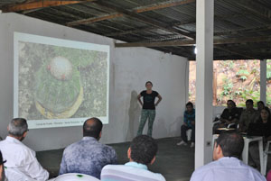 A reunião começou com uma breve apresentação sobre o projeto e seus objetivos, durante a qual já aconteceram manifestações sobre a importância da conservação e uso sustentável da serra. A seguir foi feita uma explanação sobre unidades de conservação e a Lei 9985/2000, do Sistema Nacional de Unidades de Conservação. Como exemplo da importância da área em termos de biodiversidade o promotor de justiça, Julimar Barreto, lembrou da existência de uma espécie de arbusto descoberta recentemente na Serra da Jiboia e a professora Alessandra Caiafa, da UFRB, falou da especificidade da região da Pioneira, área de afloramentos rochosos com vegetação rica.