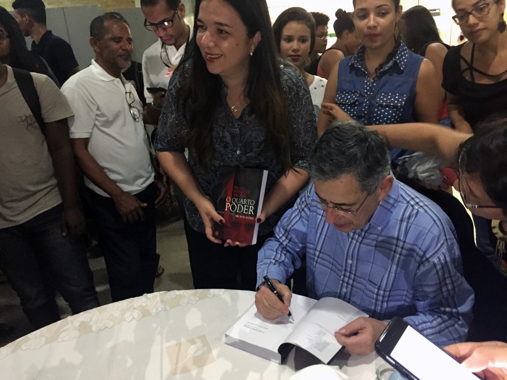 O jornalista atendeu a imprensa local no espaço da Editora da UFRB e após o término do evento participou de uma intensa agenda de autógrafos do seu recém-lançado livro “O Quarto Poder: Uma outra história”.