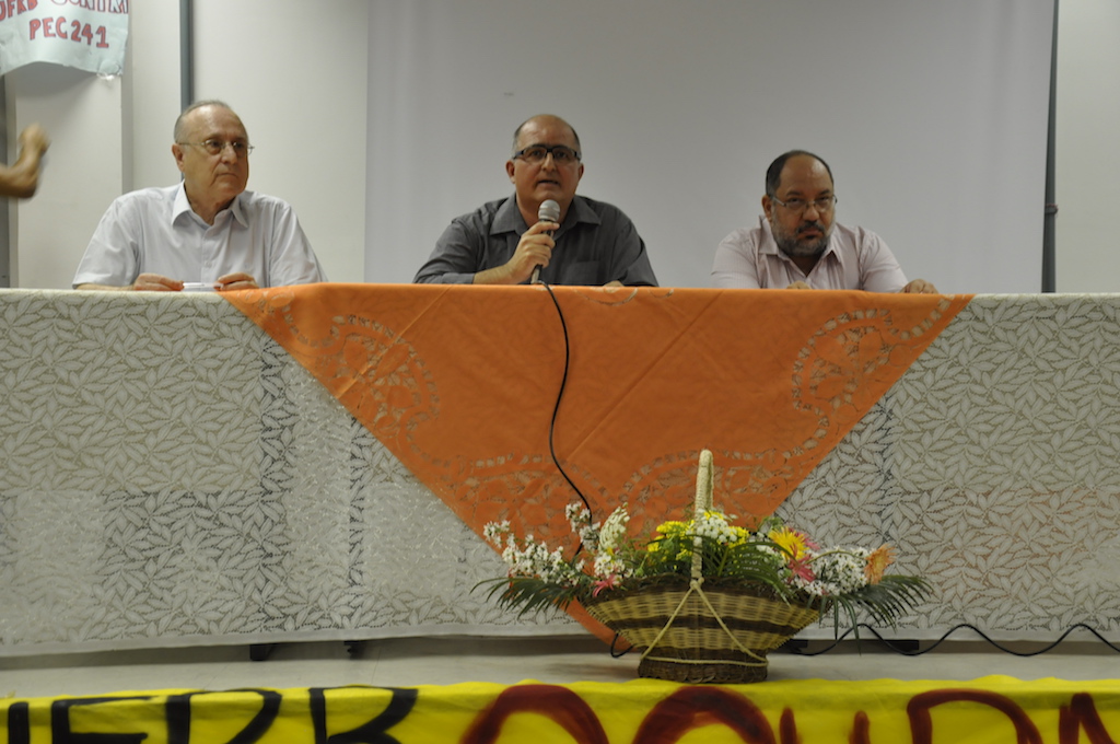 Moacir Gadotti - Na fala mais esperada do dia, o presidente do Instituto Paulo Freire iniciou agradecendo o convite da UFRB. “Essa universidade não vive um momento qualquer, porque ela não é uma universidade qualquer. Aqui está se travando uma luta por uma outra educação possível e necessária. E a luta é muito maior do que derrotas momentâneas”, disse. “Quanto mais a bota da opressão pisa no oprimido, mais o oprimido sente a sua capacidade de resistir. Os estudantes estão dando sua lição de democracia”, completou, referindo-se ao movimento de ocupação dos prédios da instituição pelos discentes em protesto contra as medidas de reforma para a Educação.