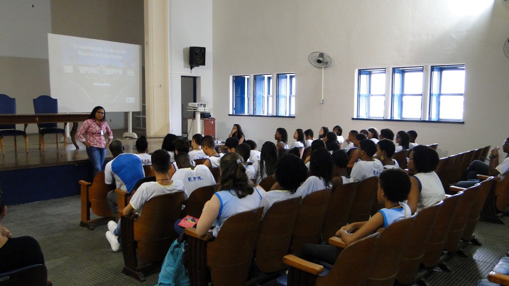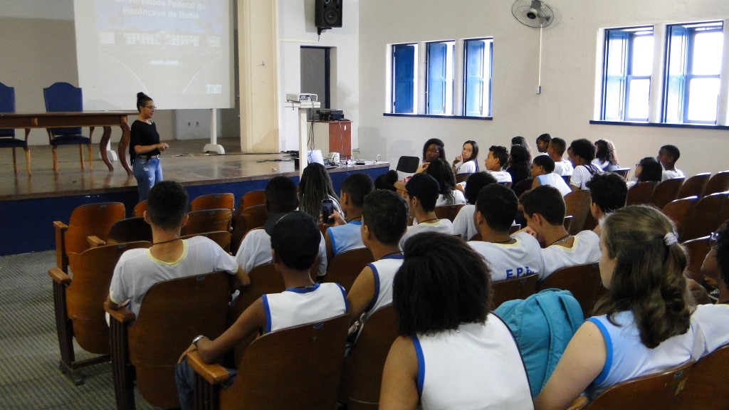 O grupo composto em sua maioria por alunos do 8º e 9º ano do ensino fundamental se reuniu no Anfiteatro da Reitoria onde o Núcleo de Gestão de Processos Seletivos (NUPSEL) da Pró-Reitoria de Graduação (PROGRAD) apresentou os campi, os cursos e o sistema de ingresso na UFRB. Os alunos anotaram as informações que lhe interessavam e fizeram perguntas. Eles também receberam folders explicativos de parte dos cursos oferecidos pela instituição.
