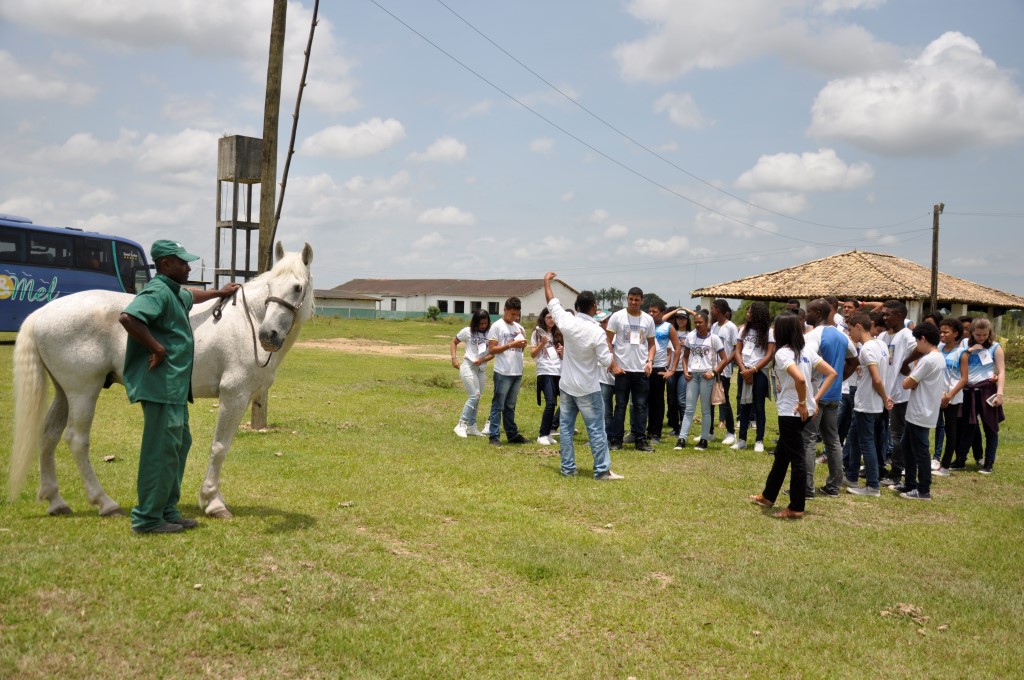 Luiz Edmundo Sobrinho, chefe do Núcleo de Experimentação e Produção Animal, acompanhou os alunos e professores em visita a Fazenda Experimental, vinculada ao Centro de Ciências Agrárias, Ambientais e Biológicas. Edmundo explicou o processo de criação, por confinamento, de aves, coelhos, caprinos, eqüinos e bovinos.