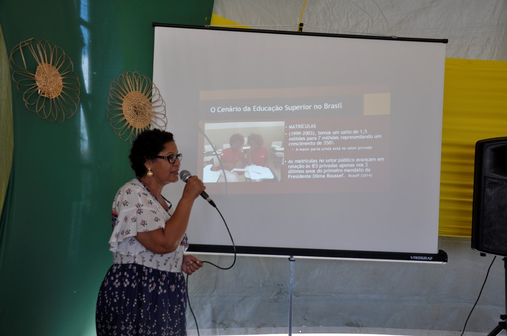A pró-reitora de Políticas Afirmativas e Assuntos Estudantis, professora Maria Goretti da Fonseca palestrou em seguida sobre o perfil do discente da UFRB. Segundo os dados apresentados, a UFRB é predominantemente feminina: 63,80%.