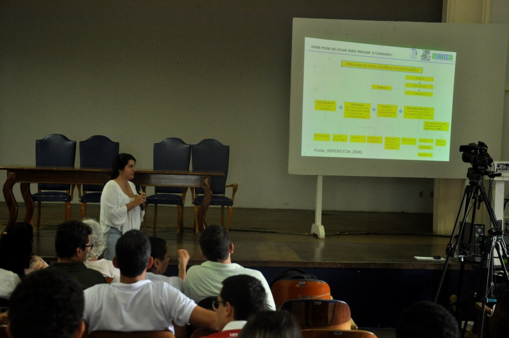 A professora Rosa Alencar fez a palestra “Conhecendo o consumo de água na UFRB”, na qual se propôs a apontar, estudar, discutir, diagnosticar e propor alternativas nos diversos pontos de consumo da UFRB. As professoras Gabriella Botelho e Anaxsandra Duarte falaram sobre “Sensibilização e consumo consciente”. Os alunos e integrantes do GT Águas, Jéssica Valéria, Djalma Santos, Eugênio Rodrigues e Laíza Santos de Oliveira falaram de suas pesquisas sobre transporte, consumo, armazenamento e desperdício de água. As pesquisas dos alunos fazem parte do desenvolvimento de trabalhos de conclusão de curso de Engenharia Sanitária e Ambiental.