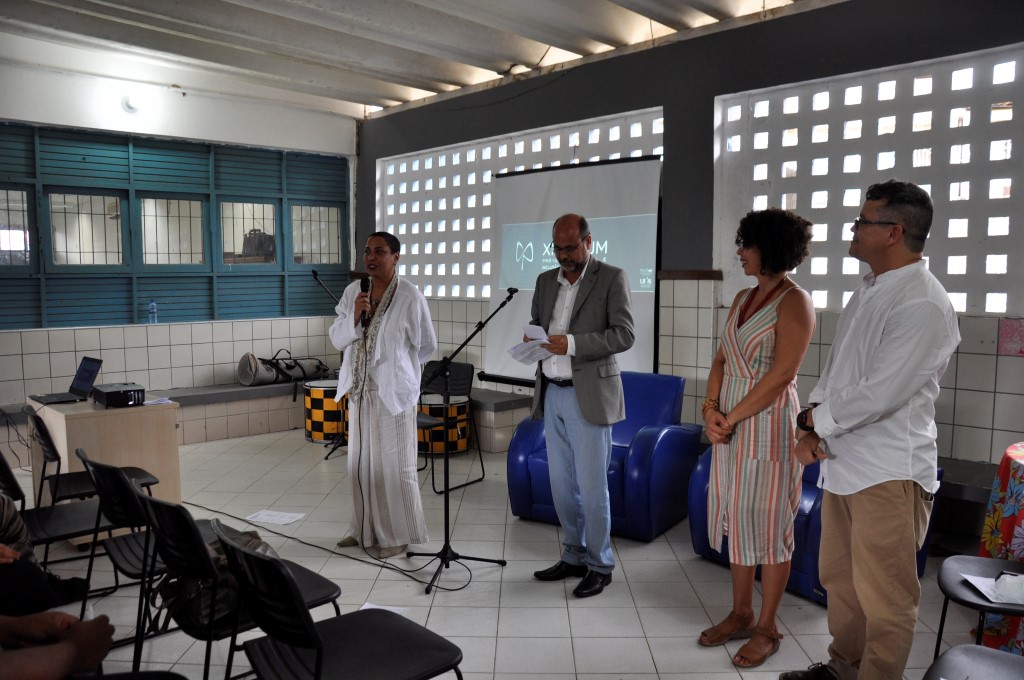 Em seguida, a mesa institucional foi composta pelo reitor da UFRB, Silvio Soglia; a vice-reitora, Georgina Gonçalves; o diretor do CECULT, Danillo Barata, e a vice-diretora, Laura Bezerra. Em sua fala, o diretor do CECULT destacou o Fórum como um evento fundador da Federal do Recôncavo e também do campus em Santo Amaro. “O Fórum foi a primeira celebração pública que tivemos. E, a todo o momento, temos trabalhado a concepção e estruturação desse Centro a partir das políticas de inclusão e igualdade”, afirmou Barata.