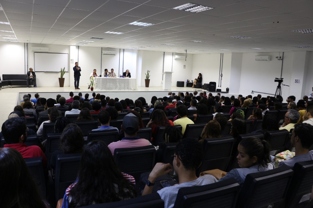 Com auditório lotado de professores, técnicos, gestores e alunos, as discussões se iniciaram sobre as dificuldades de manutenção das atividades de ensino, pesquisa e extensão das universidades públicas federais para fechar o semestre 2019.2 e os cenários possíveis para o futuro, com as discussões da Lei Orçamentária Anual (LOA), no âmbito do Governo Federal, que prevê continuidade de uma política oficial de arrocho orçamentário e corte de investimentos públicos em educação.