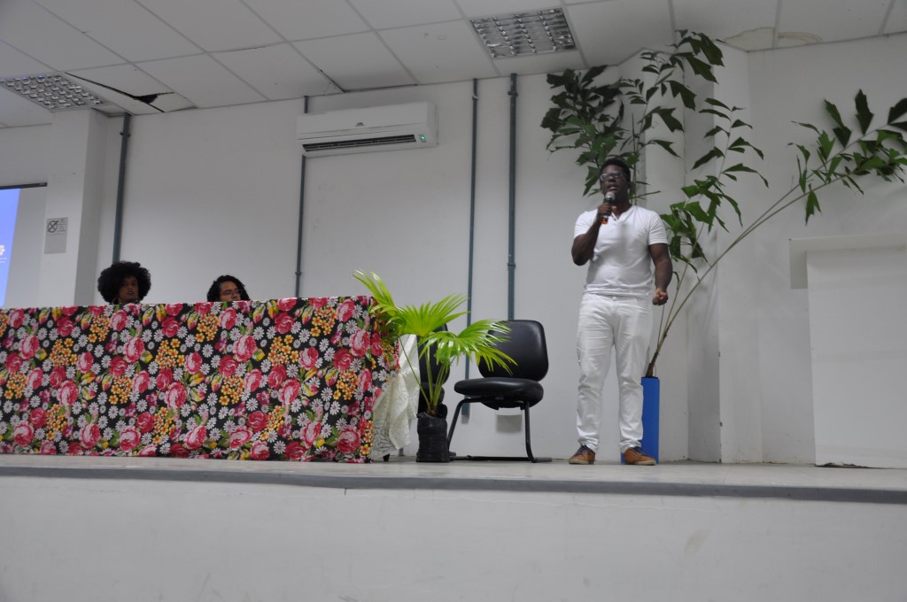 Em seguida foi realizada a Intervenção temática com uma apresentação dos jovens do projeto de extensão Educa Rap e mesas temáticas mediadas pelo servidor Elielson Aquino abordando os seguintes assuntos: “Raça, Tecnologia, Sociedade e Dinheiro”, ministrada pelo professor Igor Dantas; Interiorização da Educação e Desenvolvimento Regional; pela discente de Agronomia Aila Pereira Santos; Impactos do Racismo em Relação ao Ensino da Ciência e Tecnologia, pela discente de Engenharia Química da UFBA, Valeria Nogueira da Silva Barbosa; e Racismo Institucional no Ambiente Acadêmico e no Mercado de Trabalho, proferida pela Engenheira de Pesca pela UFRB, Luciana Oliveira.