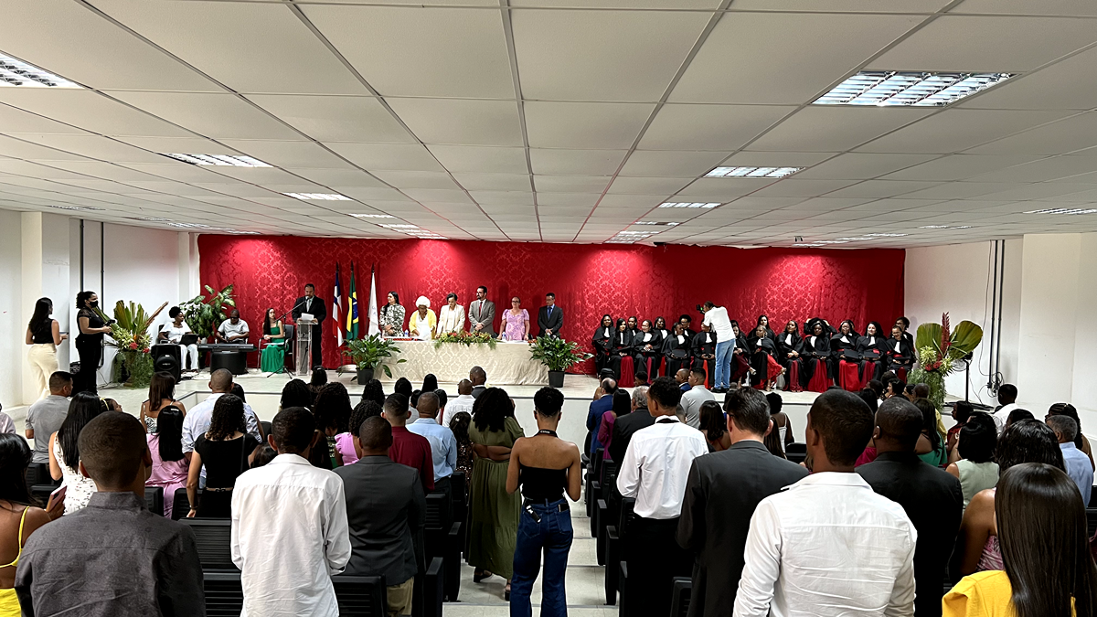 Vinte e três concluintes do curso de Licenciatura em Pedagogia, do município de Castro Alves, participaram da cerimônia de colação de grau, na noite do dia 24, no auditório da Biblioteca da Universidade Federal do Recôncavo da Bahia (UFRB), Campus Cruz das Almas. As professoras licenciadas fizeram parte da turma do Plano Nacional de Formação de Professores (Parfor), vinculada ao Centro de Formação de Professores (CFP), da UFRB. A Turma 2018 do Parfor teve aulas ministradas por professores do CFP, em escola publica, no próprio município de Castro Alves, pela primeira vez.