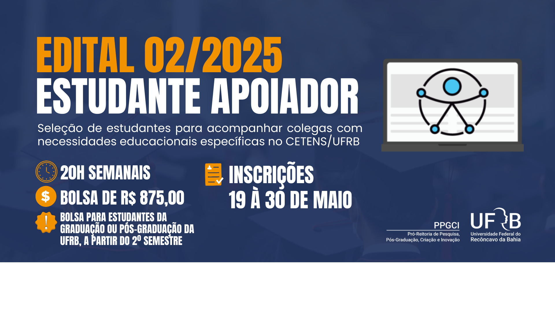 Edital nº002/2025 – Inscrição para seleção e formação de cadastro reserva de estudante apoiador remunerado para realizar acompanhamento de estudantes com necessidades educacionais específicas para a Pós-graduação.
