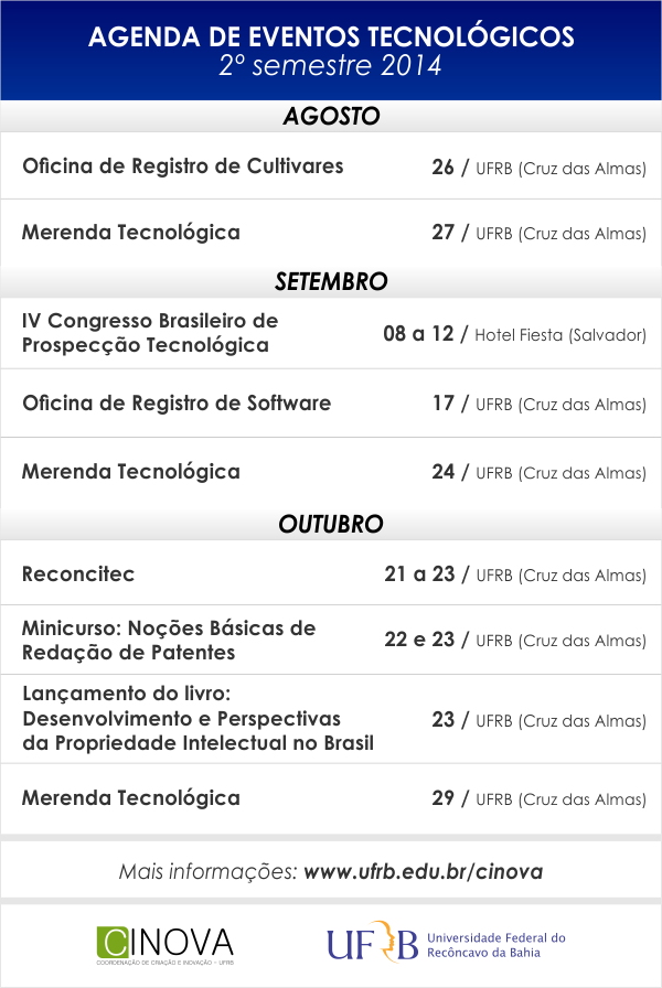 CALENDÁRIO DE EVENTOS NA ÁREA DE INOVAÇÃO TECNOLÓGICA 2014.2