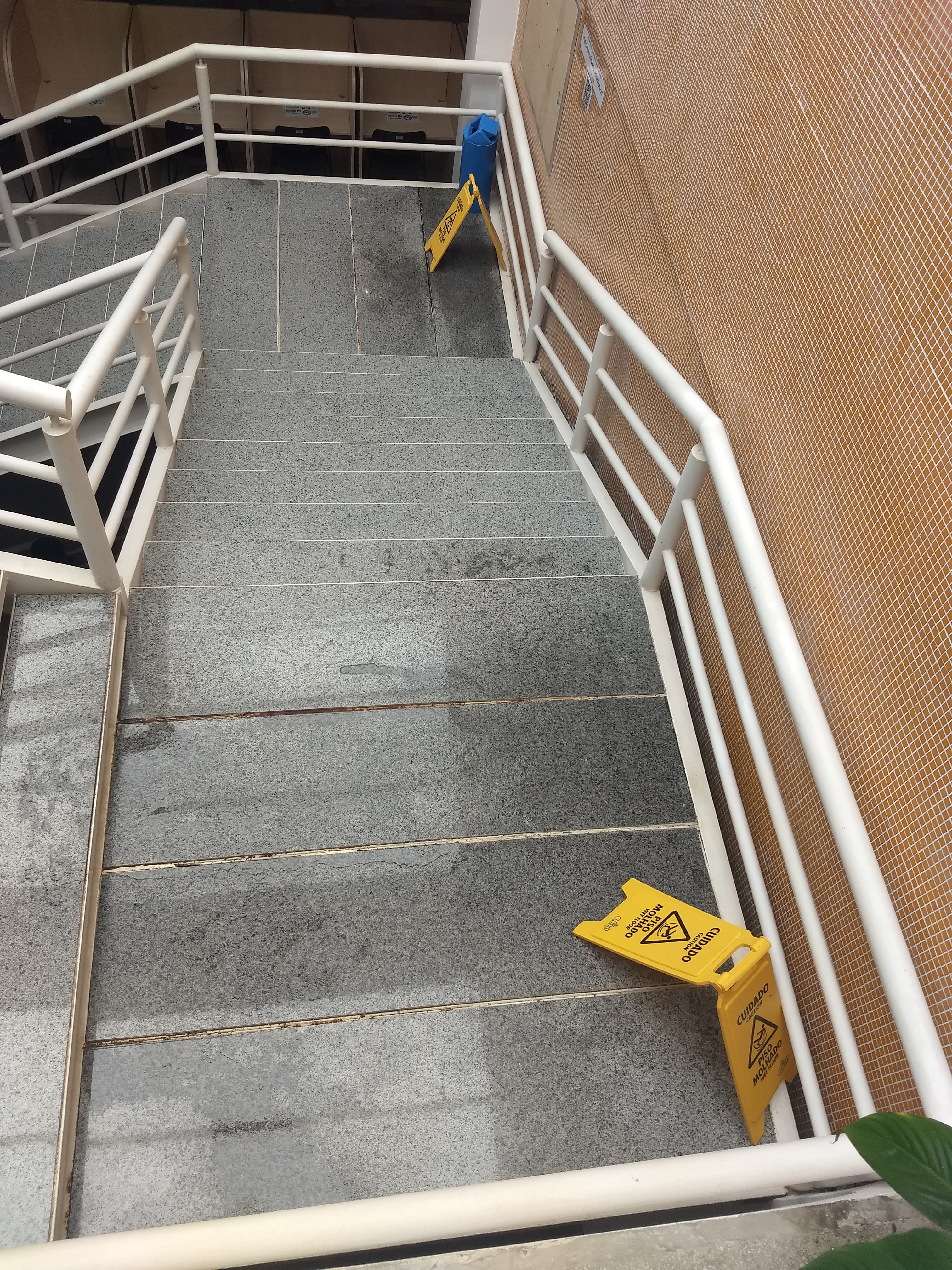 Abaixo fotos da atual situação do teto e escada nos períodos de chuva.