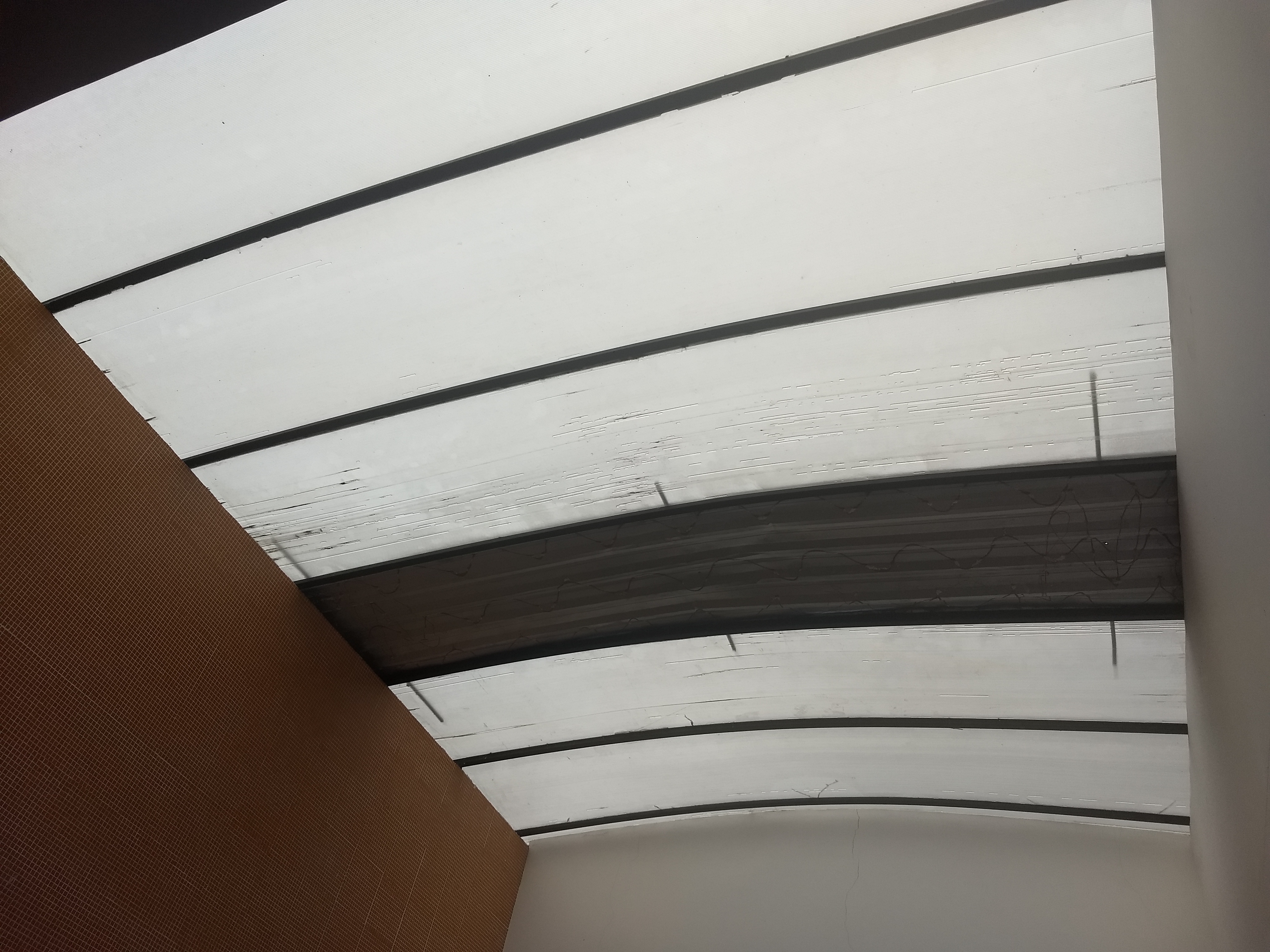 É de conhecimento de todos que o Teto de Policarbonato da Biblioteca de Cruz apresenta infiltrações e vazamentos à muito tempo.