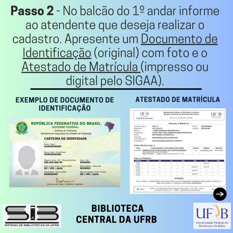 CADASTRO NA BIBLIOTECA CENTRAL DA UFRB - ORIENTAÇÕES