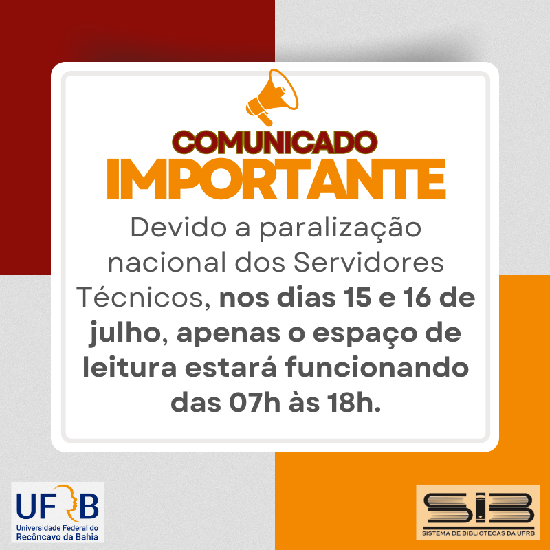 FUNCIONAMENTO DA BIBLIOTECA CENTRAL (15 e 16/07/2025)