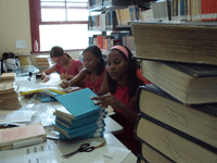 Cerca de 30 pessoas, entre técnicos da área de biblioteconomia, bibliotecários, assistentes administrativos, pessoal terceirizado e estagiários, estão empenhados em catalogar cada um dos mais de 45 mil exemplares de publicações (livros), além de revistas e periódicos, do acervo da Biblioteca Central da UFRB, em Cruz das Almas. Uma verdadeira ‘força-tarefa’ para que esse processo de informatização possa acontecer da forma mais rápida e eficiente, dada a complexidade de classificar, catalogar, tombar, carimbar e proteger com tarja magnética, cada um dos exemplares, além de organizá-los nas devidas estantes por área ou tema. Por conta de todo esse processo de informatização, a Biblioteca Central da UFRB, em Cruz das Almas, está fechada para atendimento e só retomará suas atividades ao público externo em 26 abril.