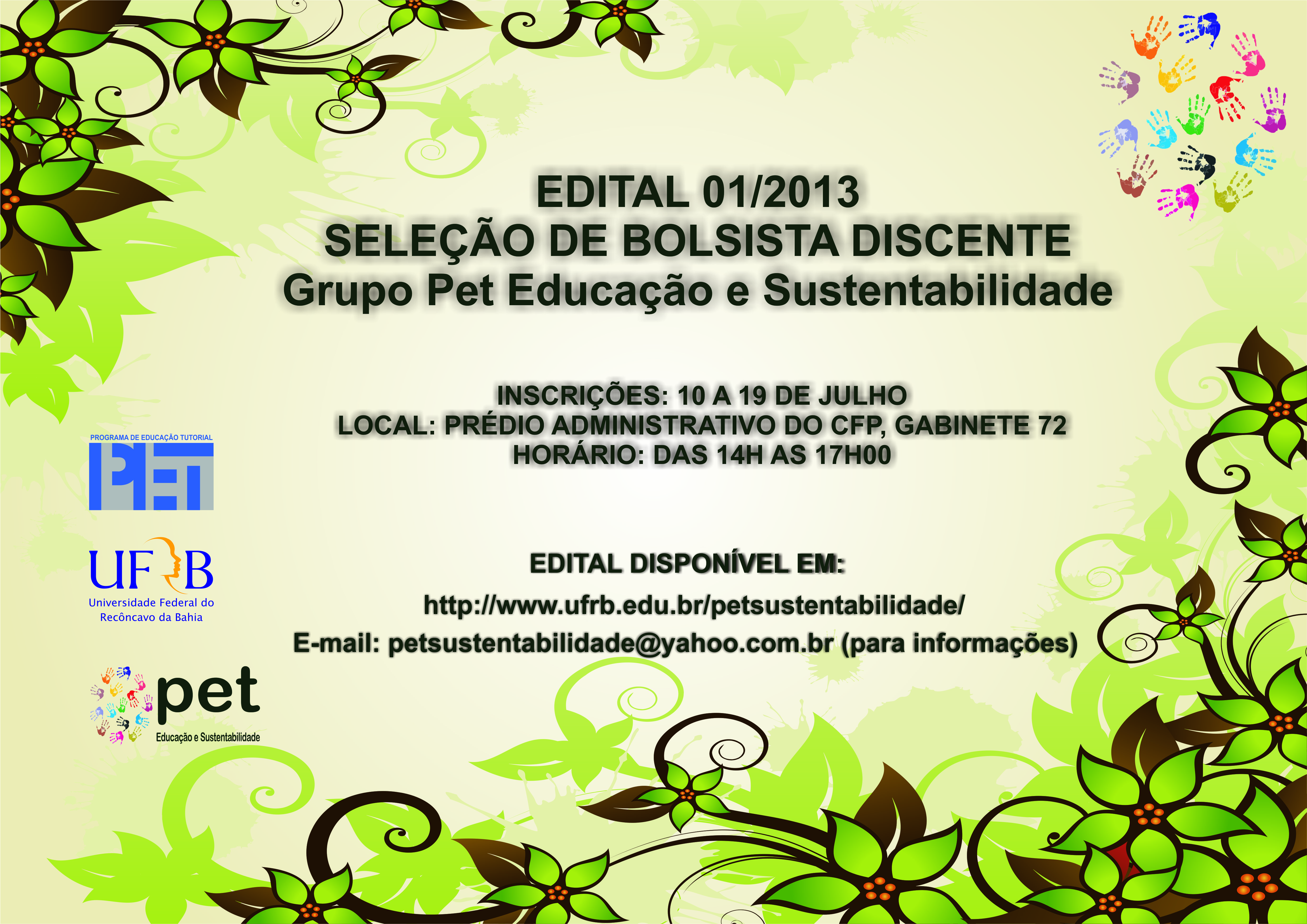 EDITAL 01/2013 - SELEÇÃO DE NOVOS BOLSISTAS DISCENTE PET EDUCAÇÃO E SUSTENTABILIDADE